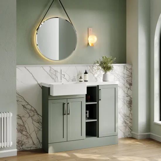 Nuie Lux Fable 1000mm Left Hand Fern Green Combination Unit & Basin With Soft Close Doors & Handles