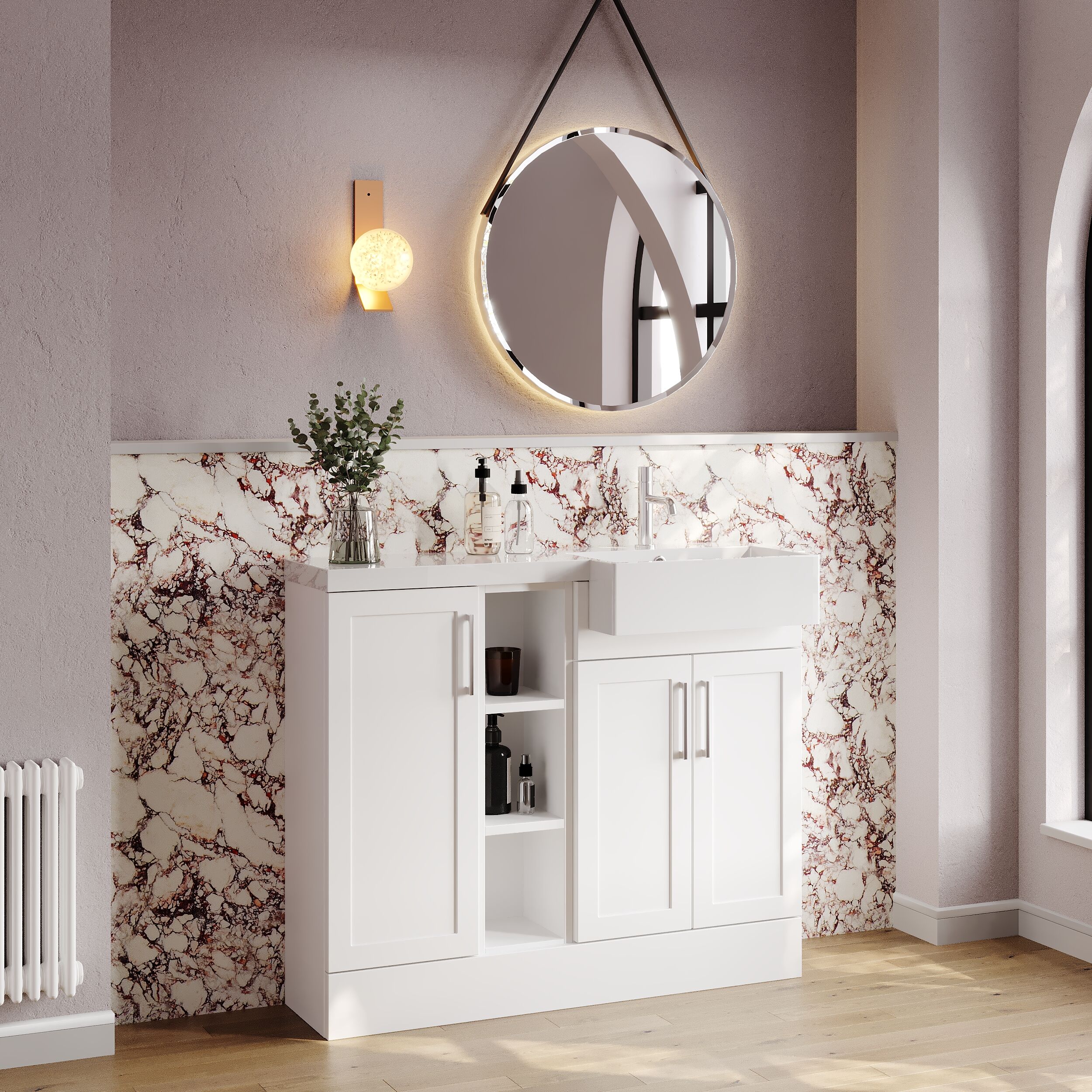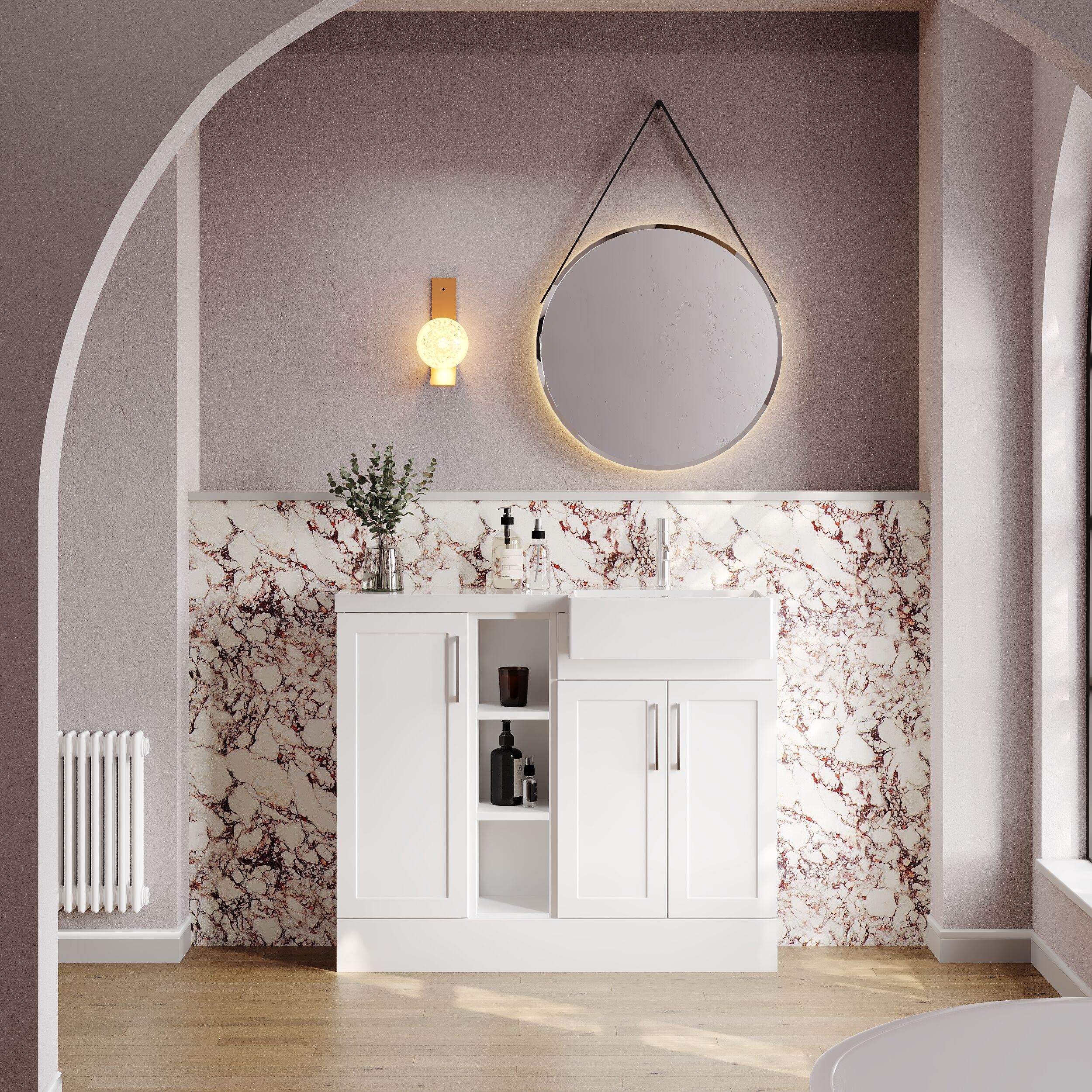 Nuie Lux Fable 1005mm Matt White Traditional Right Hand Combination Unit & Basin With Soft Close Doors & Handles