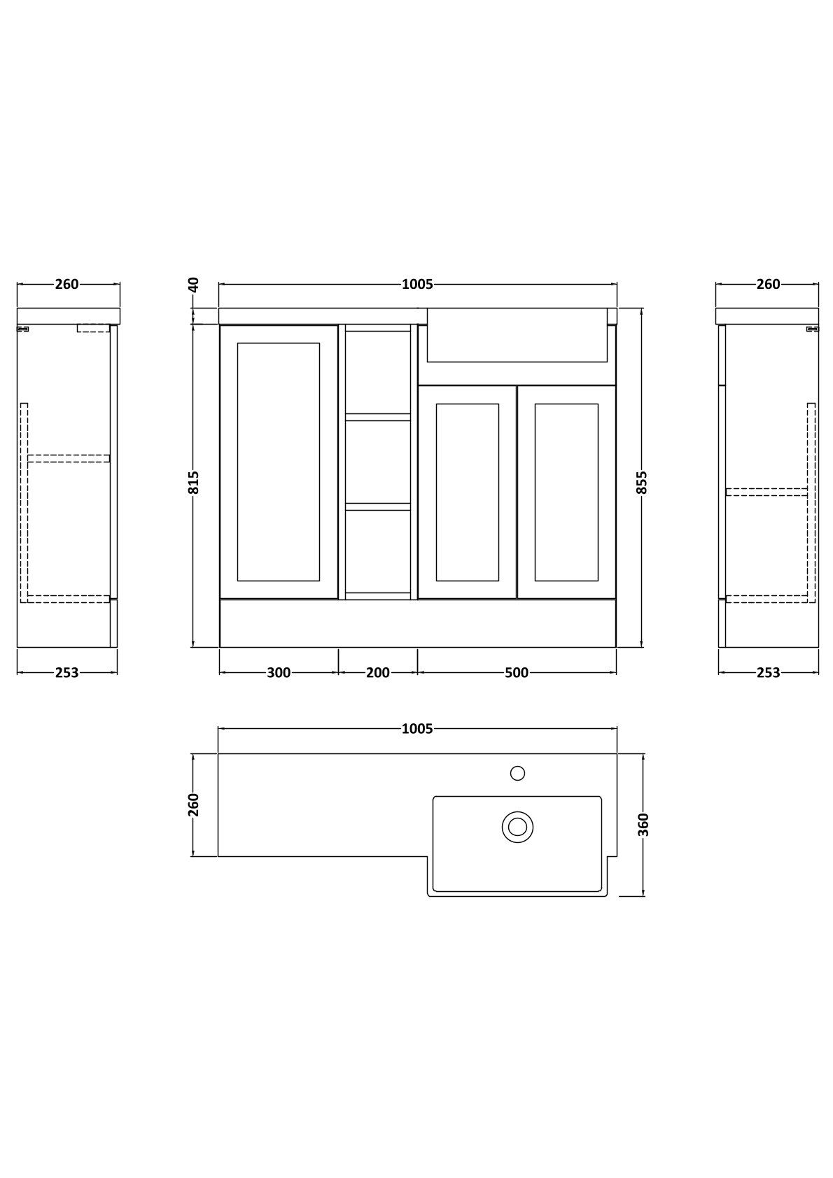 Supplied with luxury polymarble right-hand basin, predrilled with 1 tap hole and high quality handles.