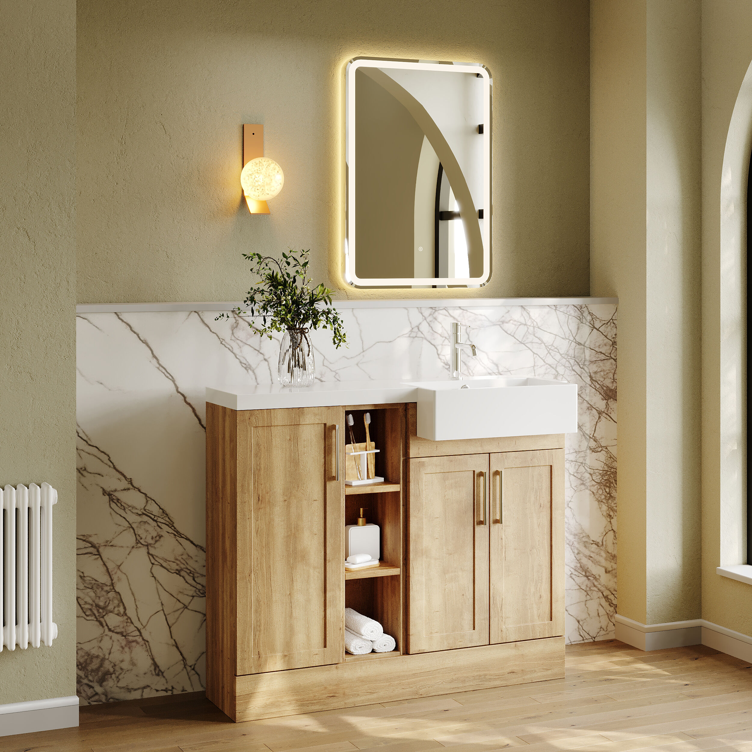 Nuie Lux Fable 1000mm Compact Combination Unit & Basin - Right Hand - Autumn Oak