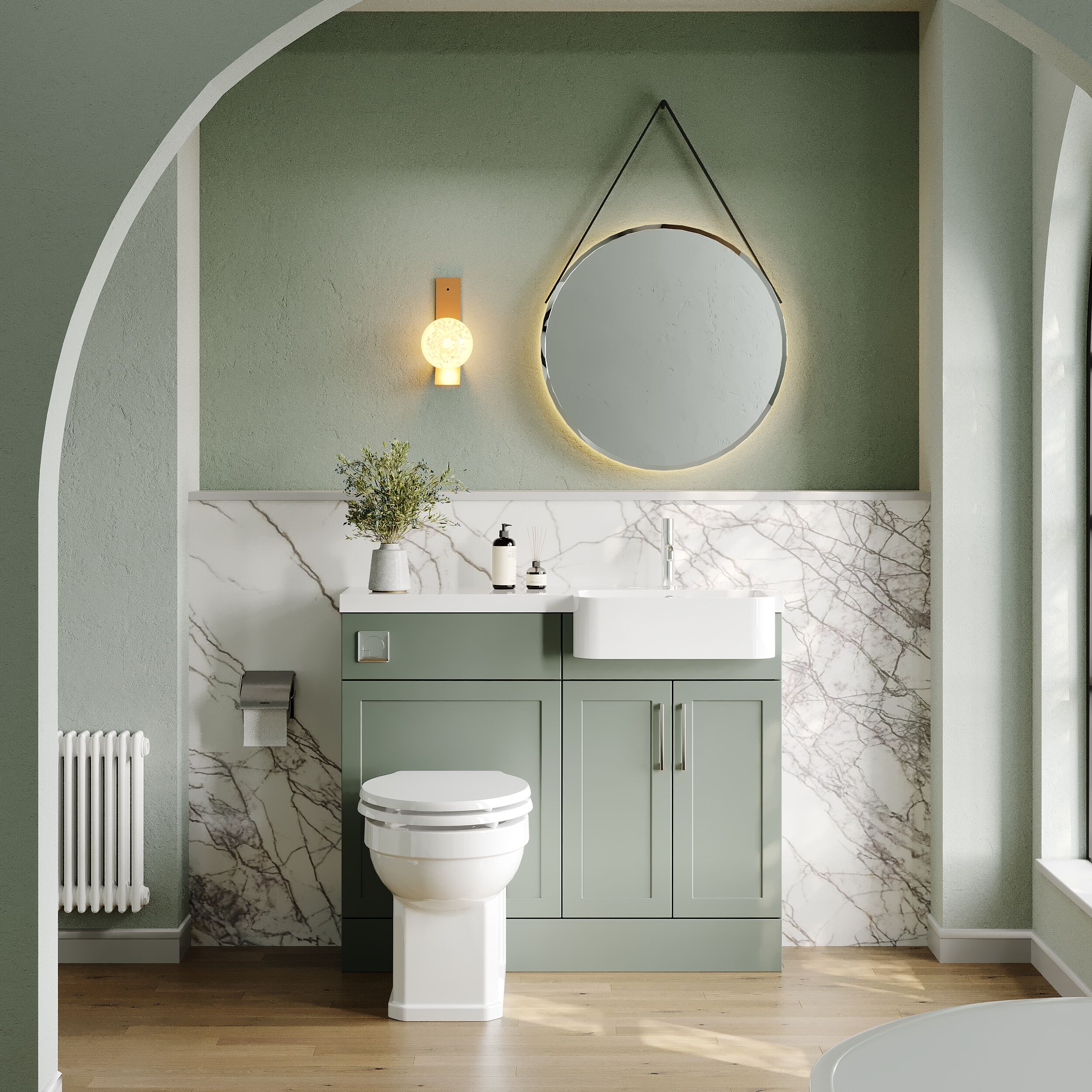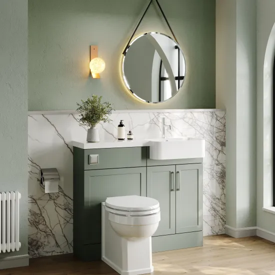 Nuie Lux Fable 1000mm Compact Combination Unit & Basin - Right Hand - Fern Green
