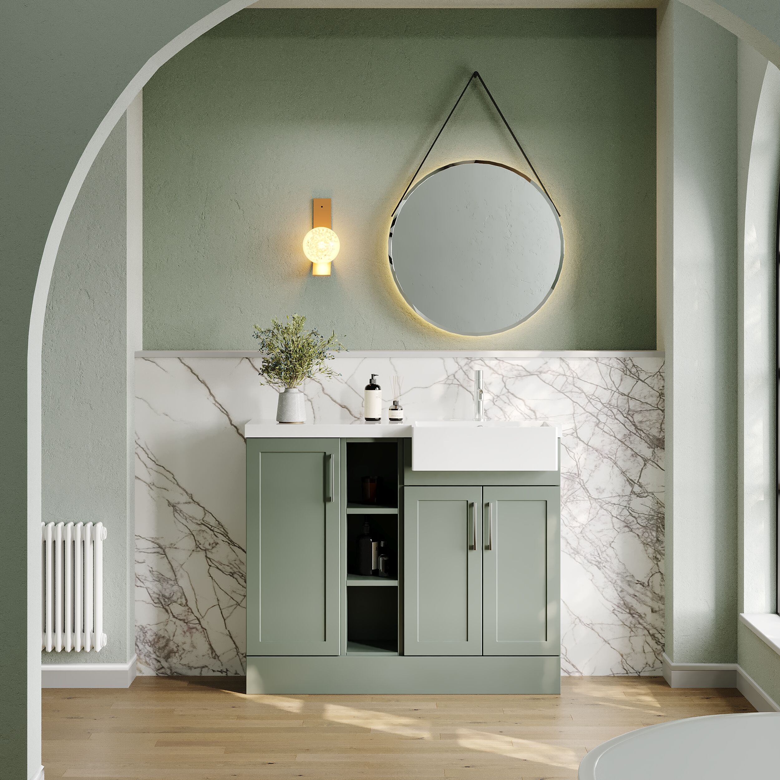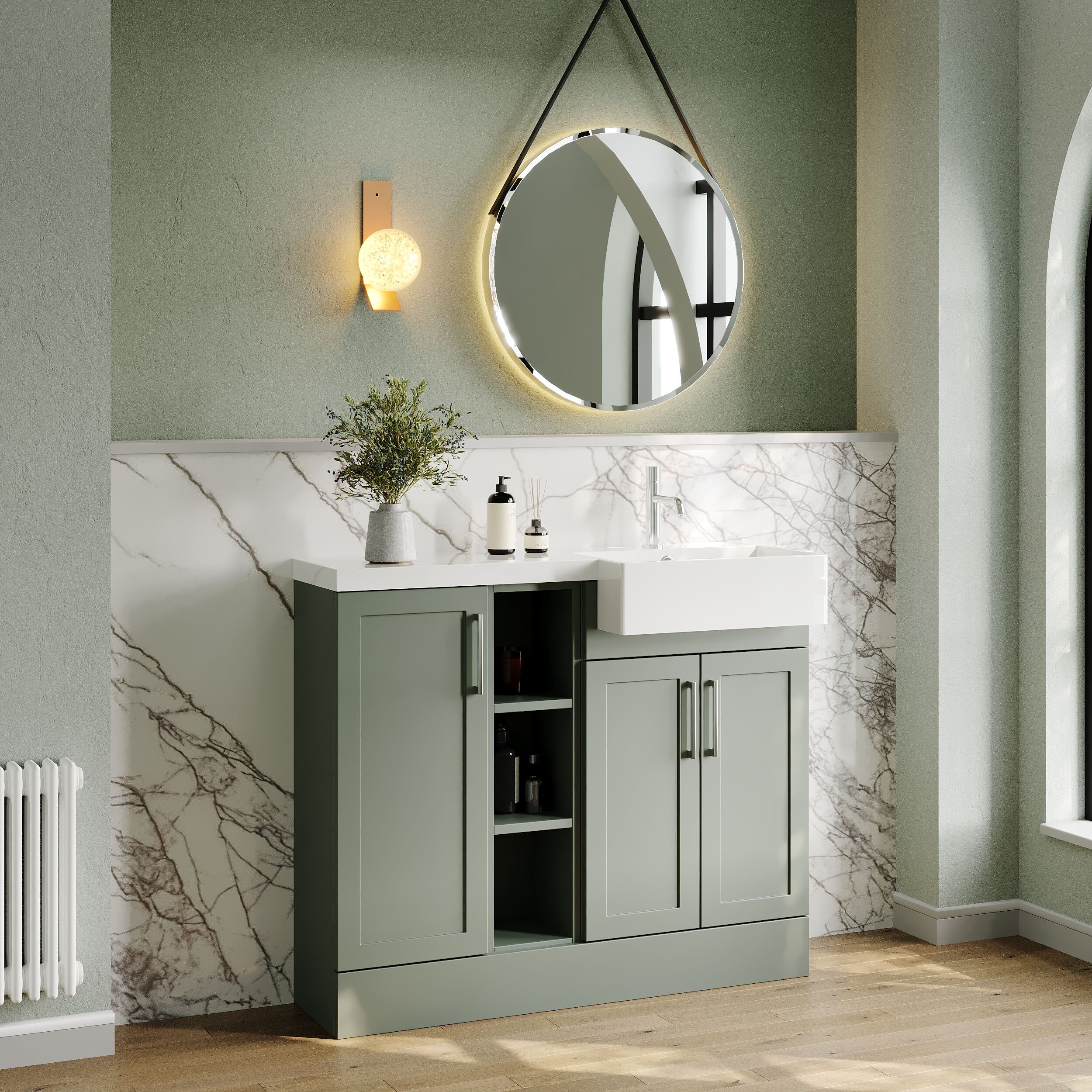 Nuie Lux Fable 1000mm Compact Combination Unit & Basin - Right Hand - Fern Green