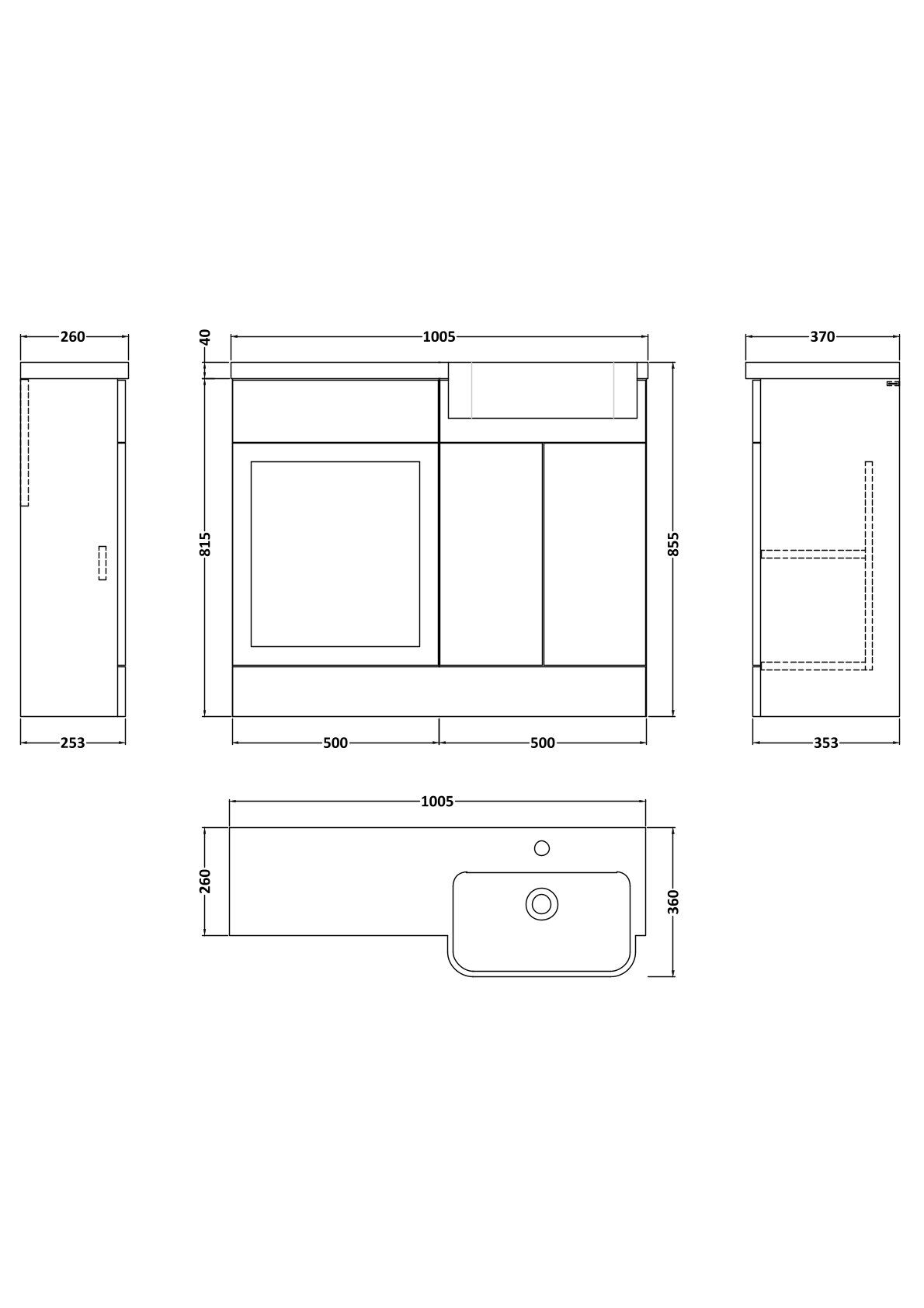 Supplied with luxury polymarble right-hand basin, predrilled with 1 tap hole and high quality handles.