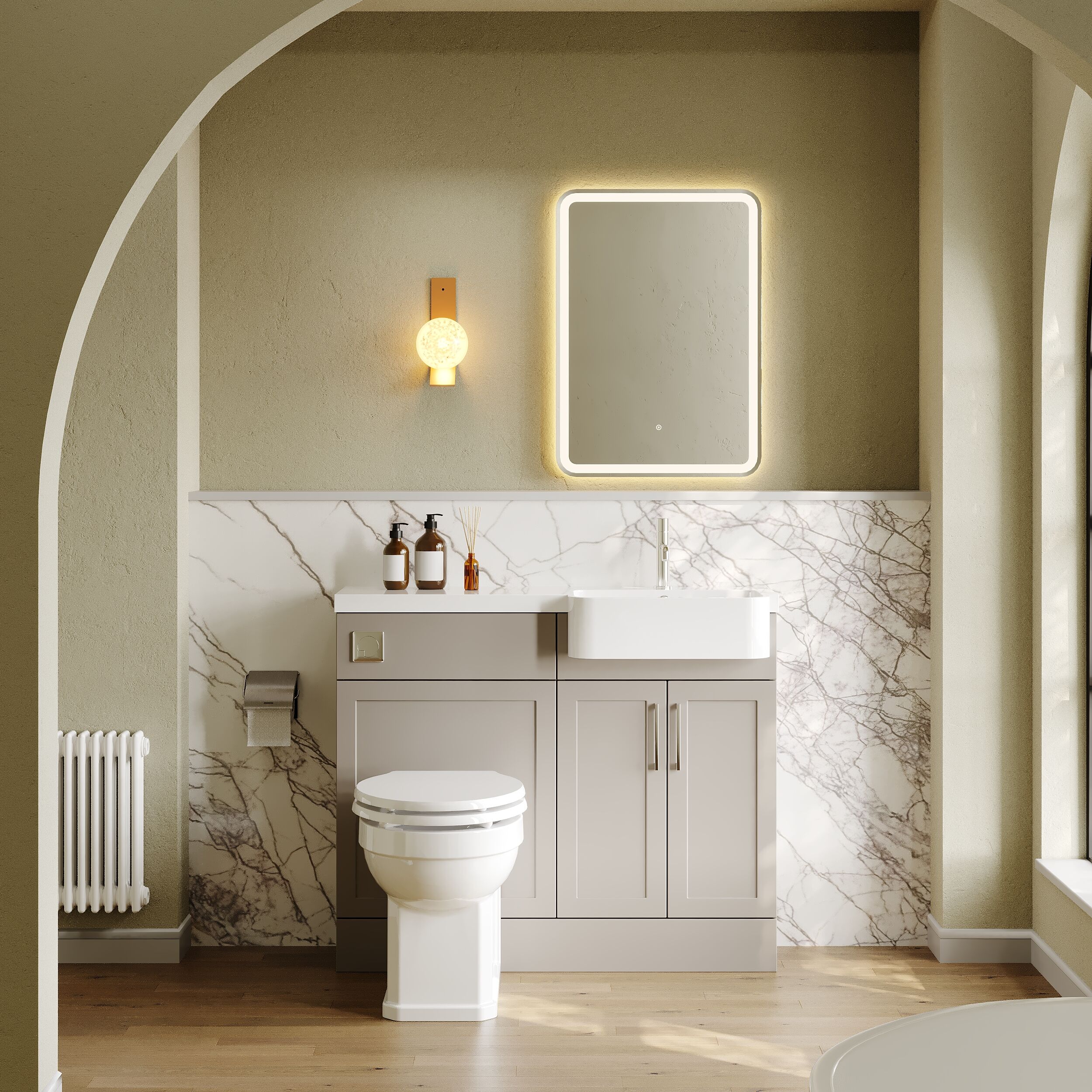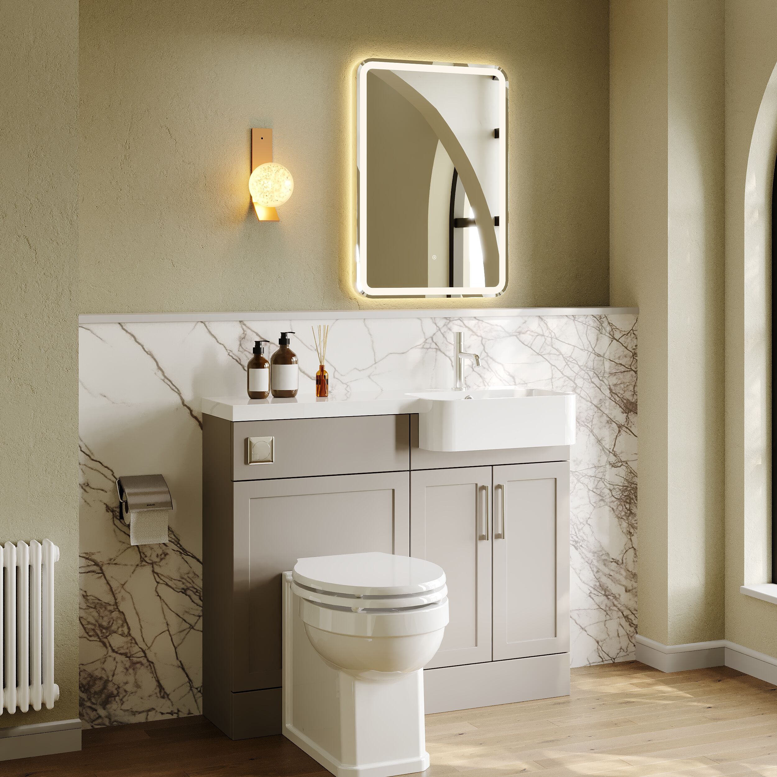 Nuie Lux Fable 1000mm Pebble Grey Right Hand Combination Unit & Basin With Soft Close Doors Rigid Built