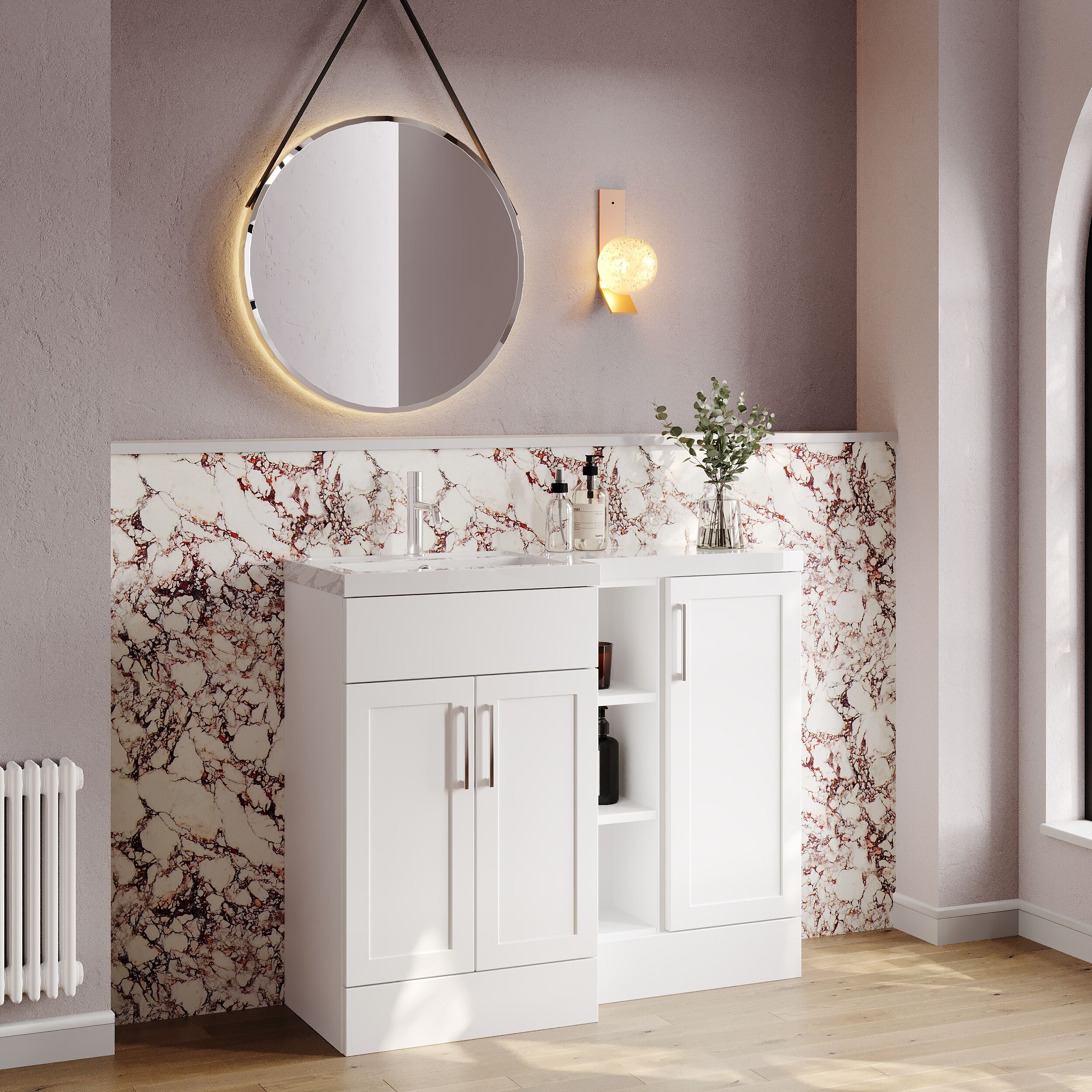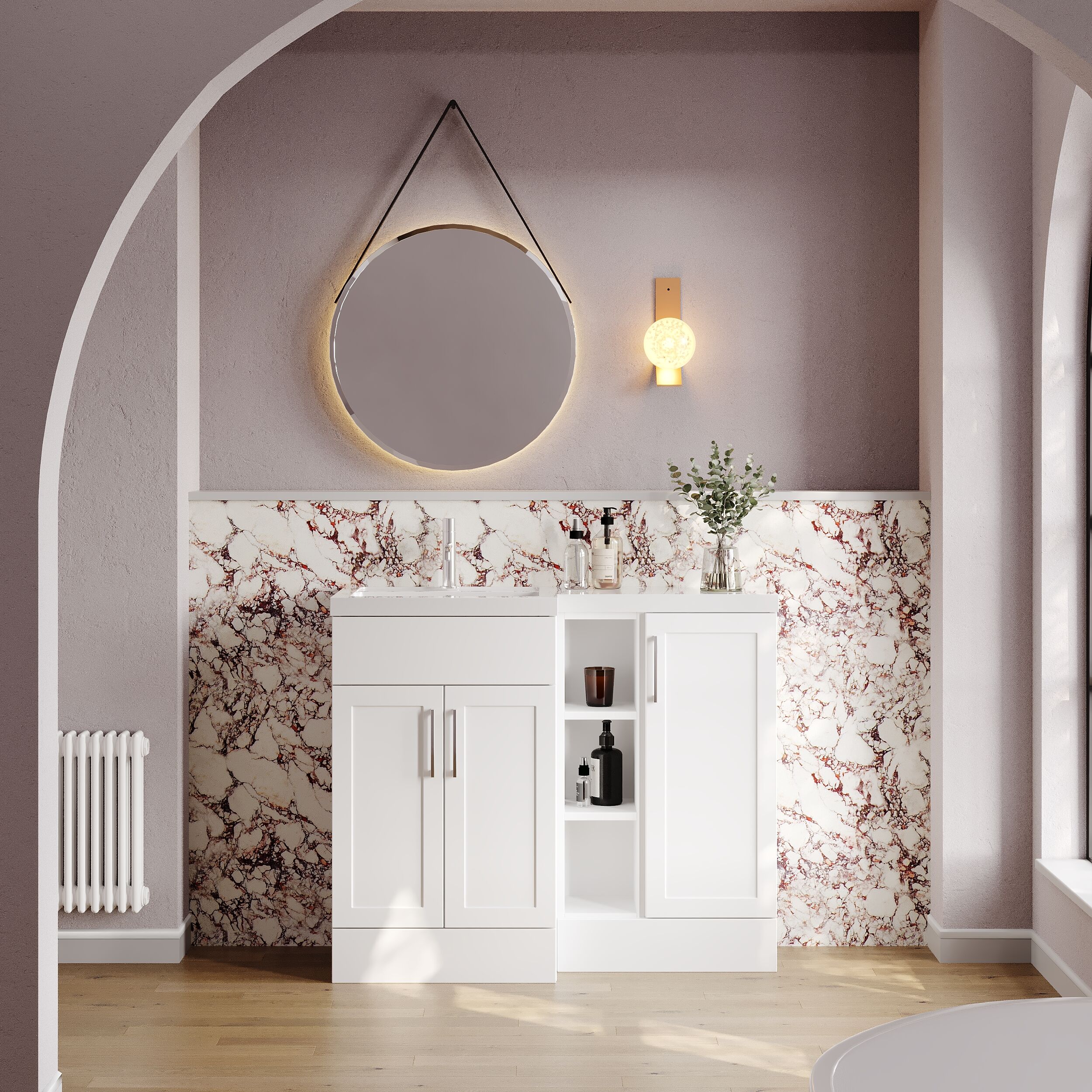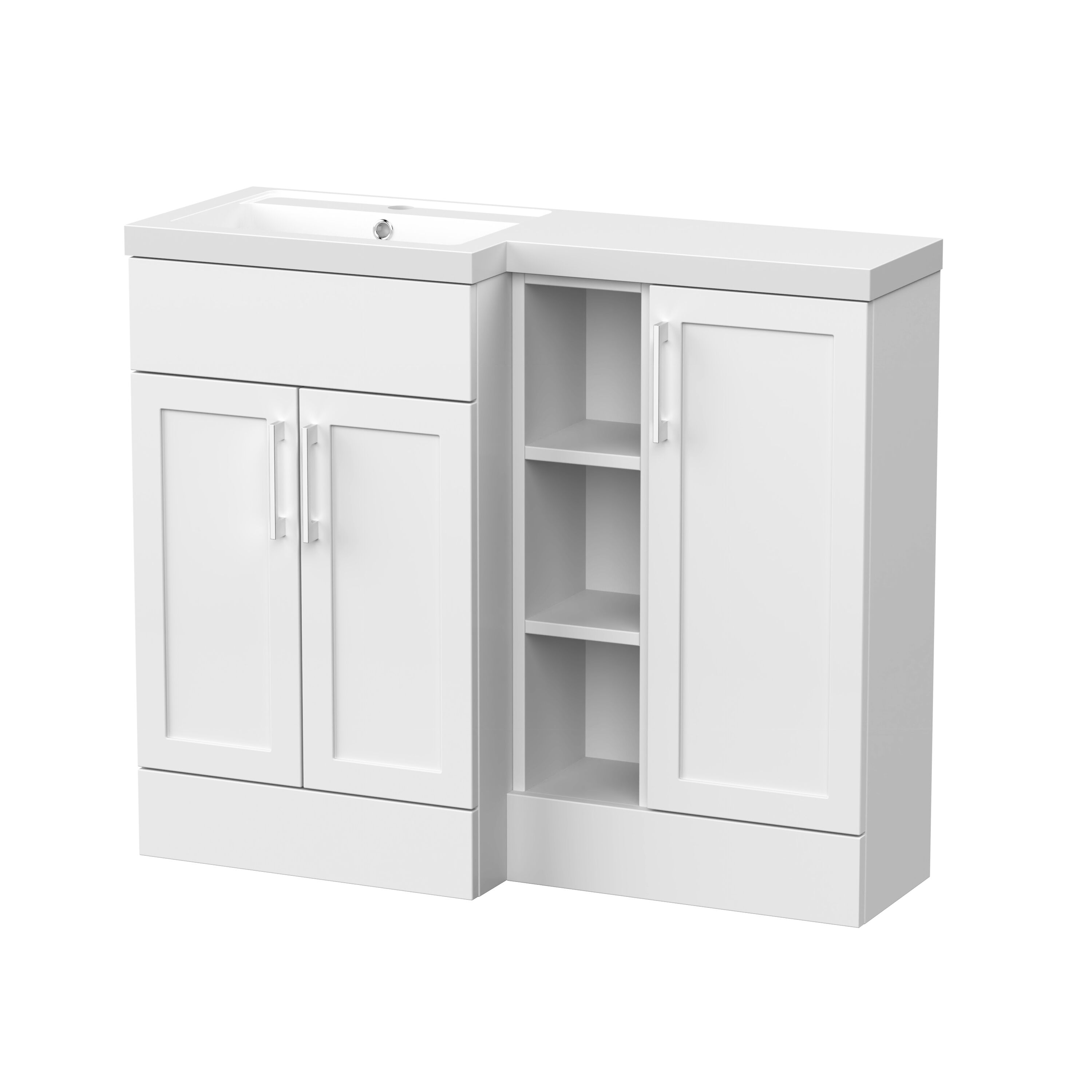 Nuie Lux Fable 1000mm Full Depth Combination Unit & L-Shaped Basin - Left Hand - Matt White