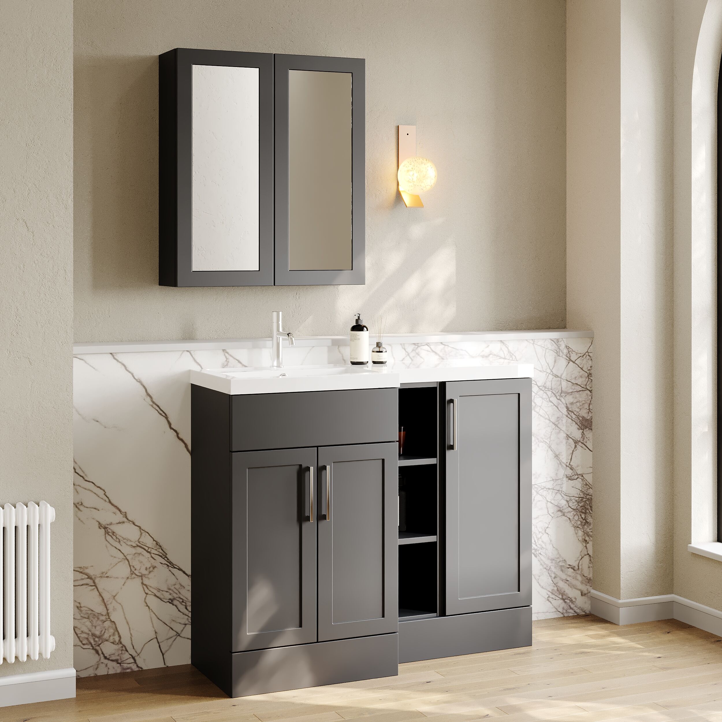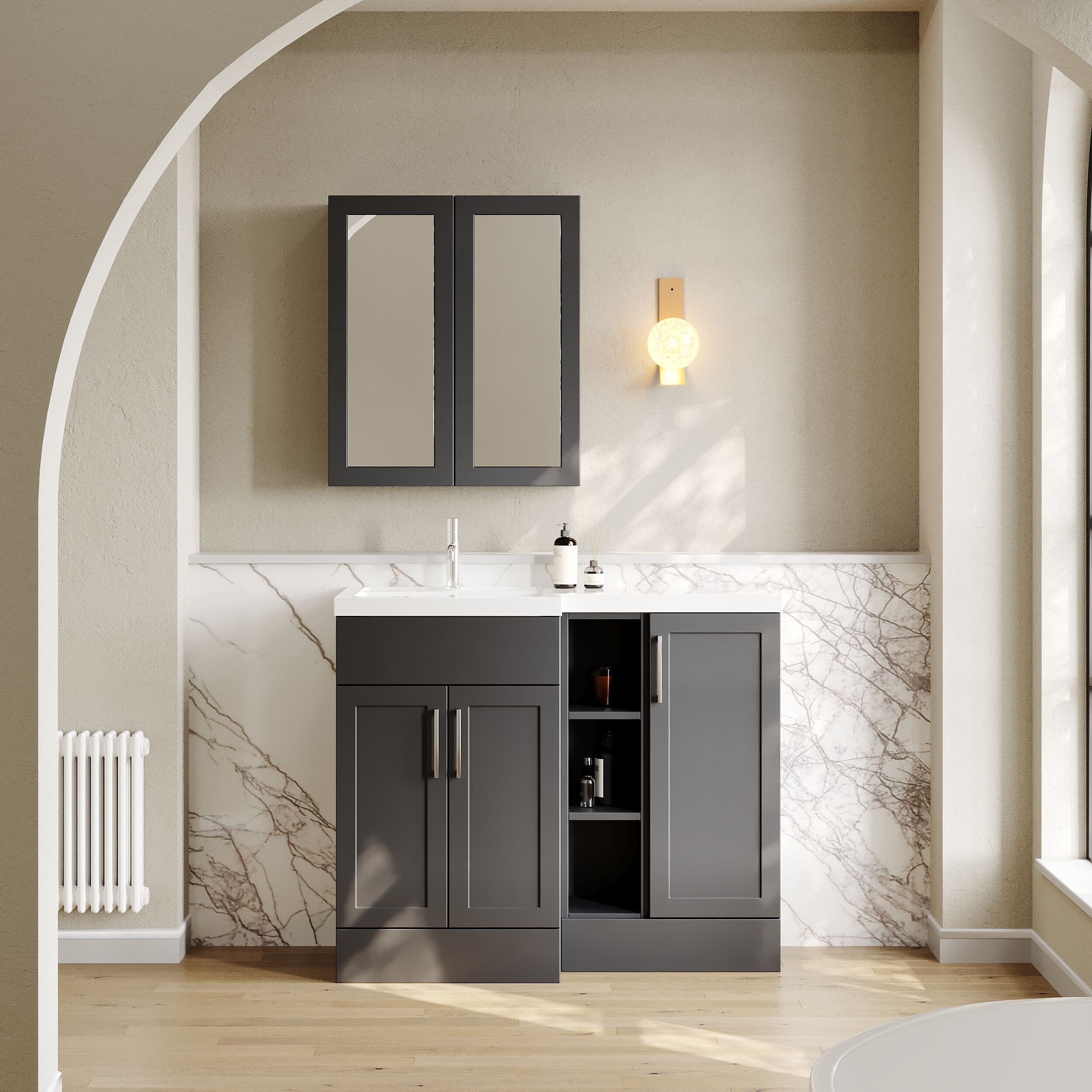 Nuie Lux Fable 1000mm Full Depth Combination Unit & L-Shaped Basin - Left Hand - Pebble Grey