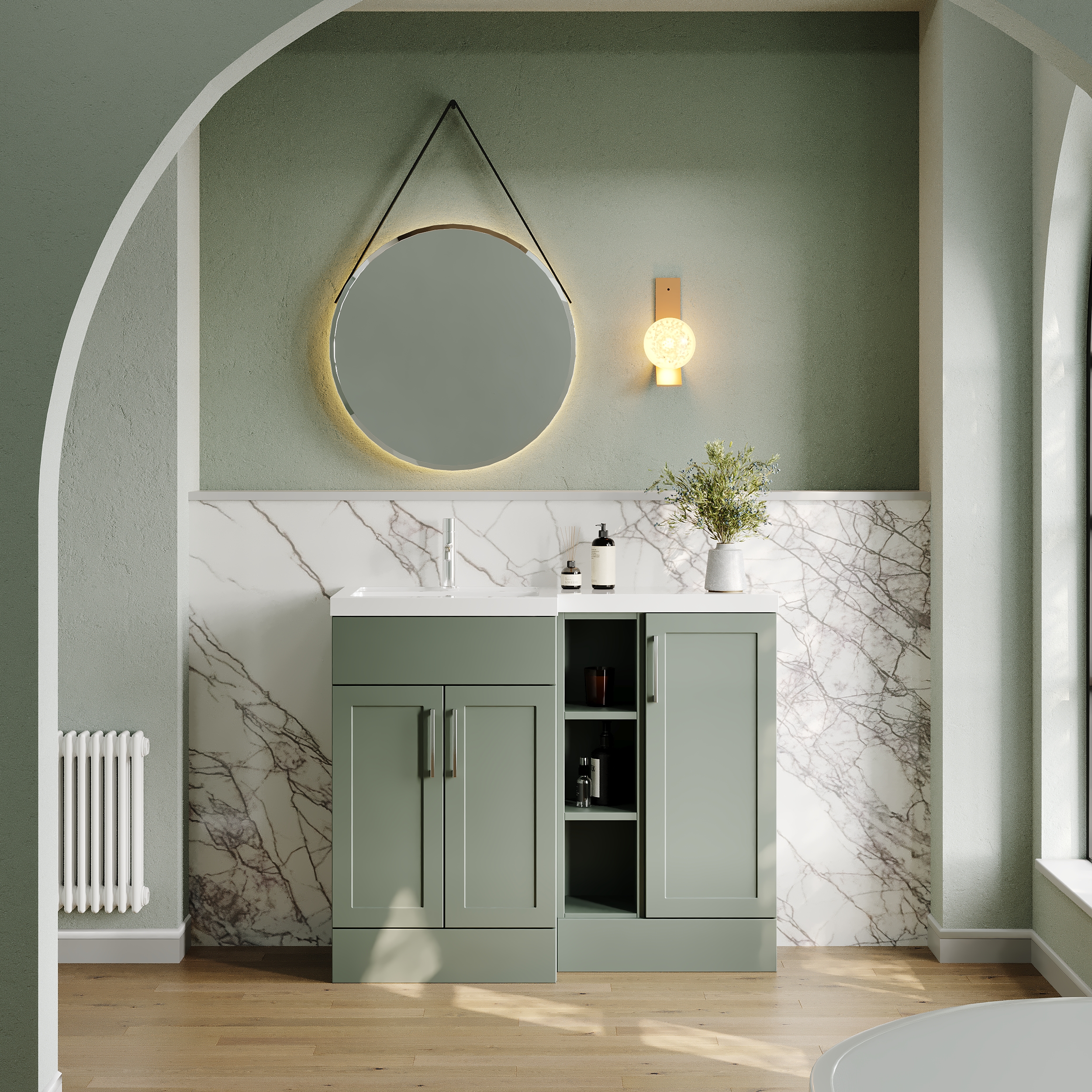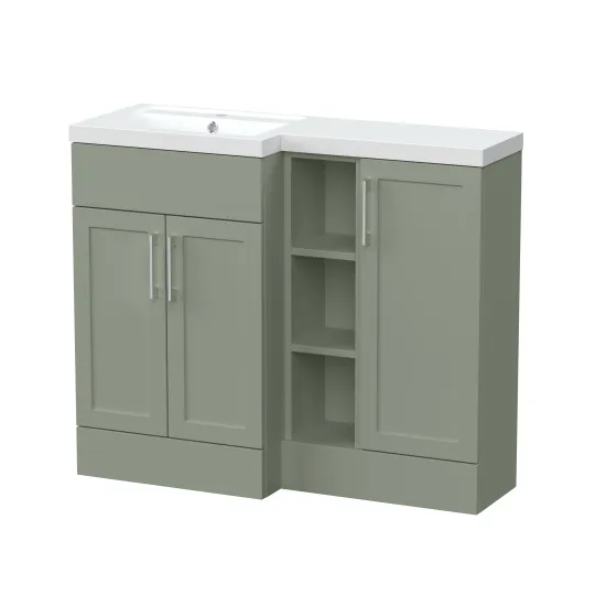 Nuie Lux Fable 1000mm Full Depth Combination Unit & L-Shaped Basin - Left Hand - Fern Green