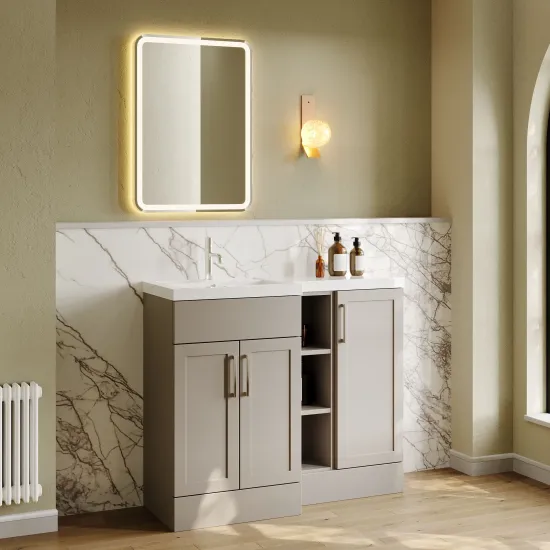 Nuie Lux Fable 1000mm Full Depth Combination Unit & L-Shaped Basin - Left Hand - Pebble Grey