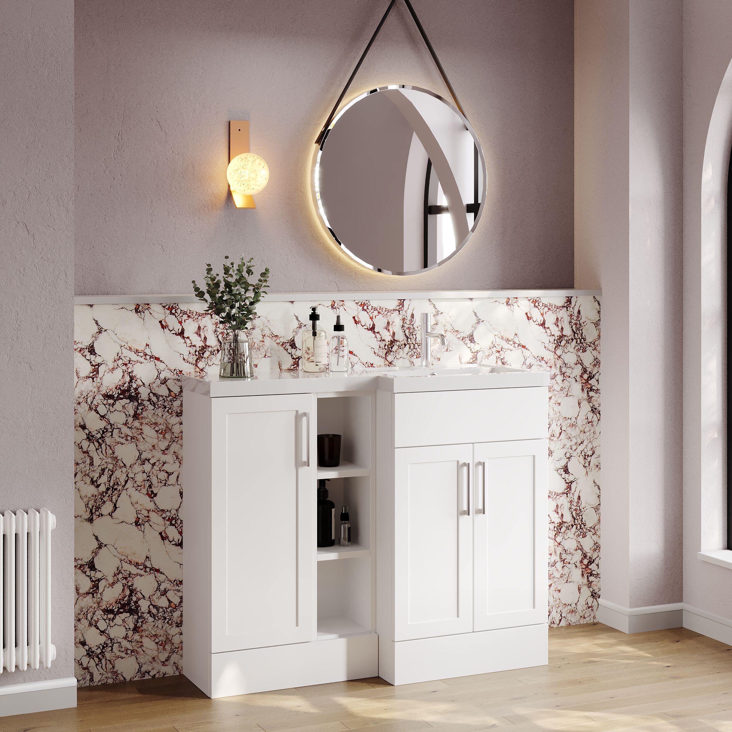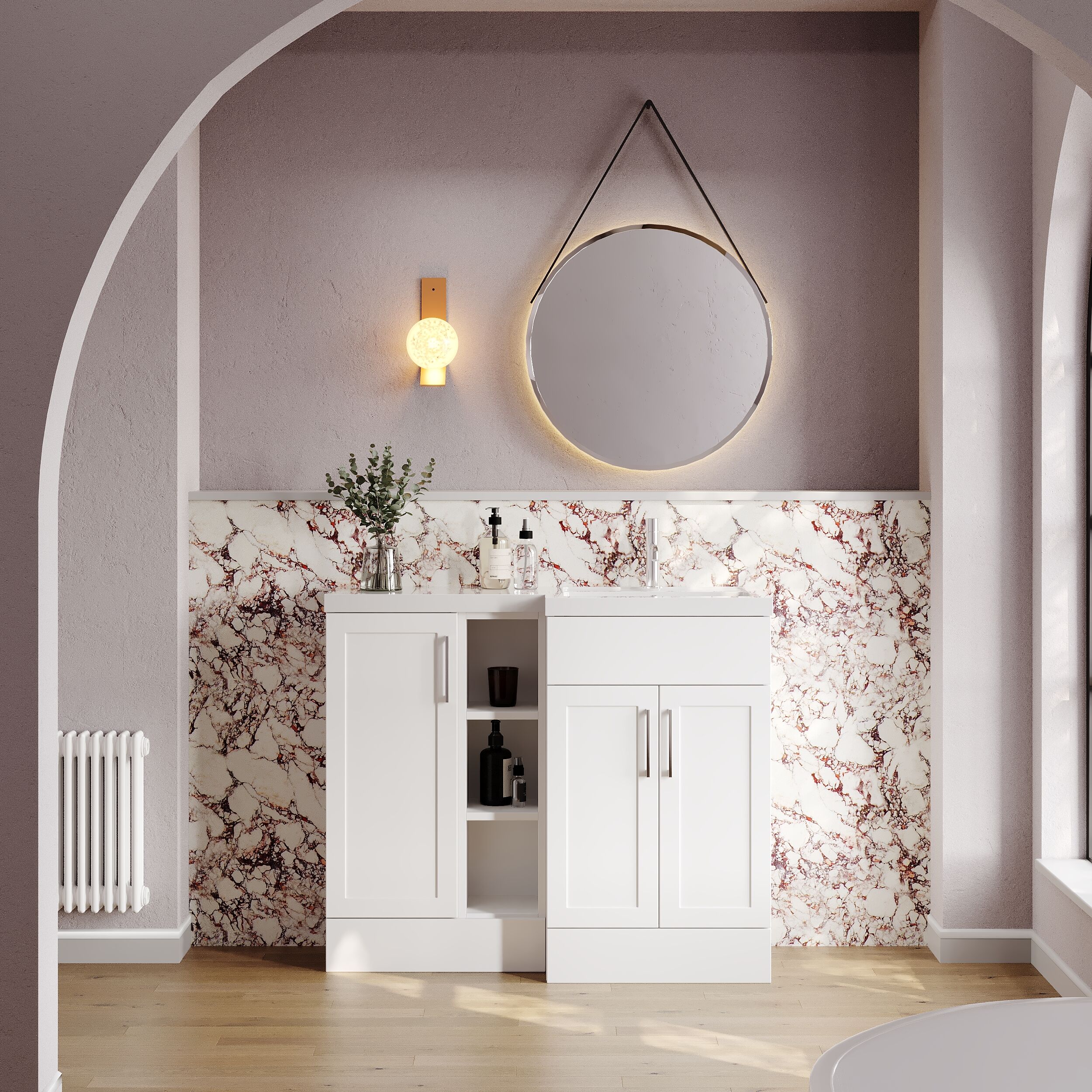 Nuie Lux Fable 1000mm Full Depth Combination Unit & L-Shaped Basin - Right Hand - Matt White
