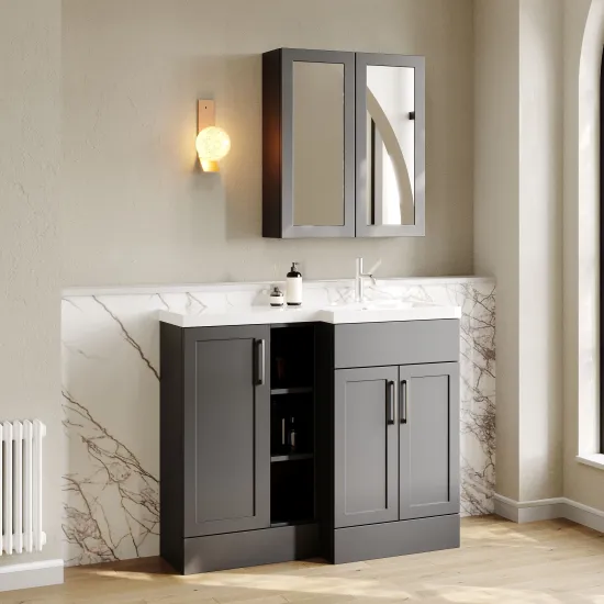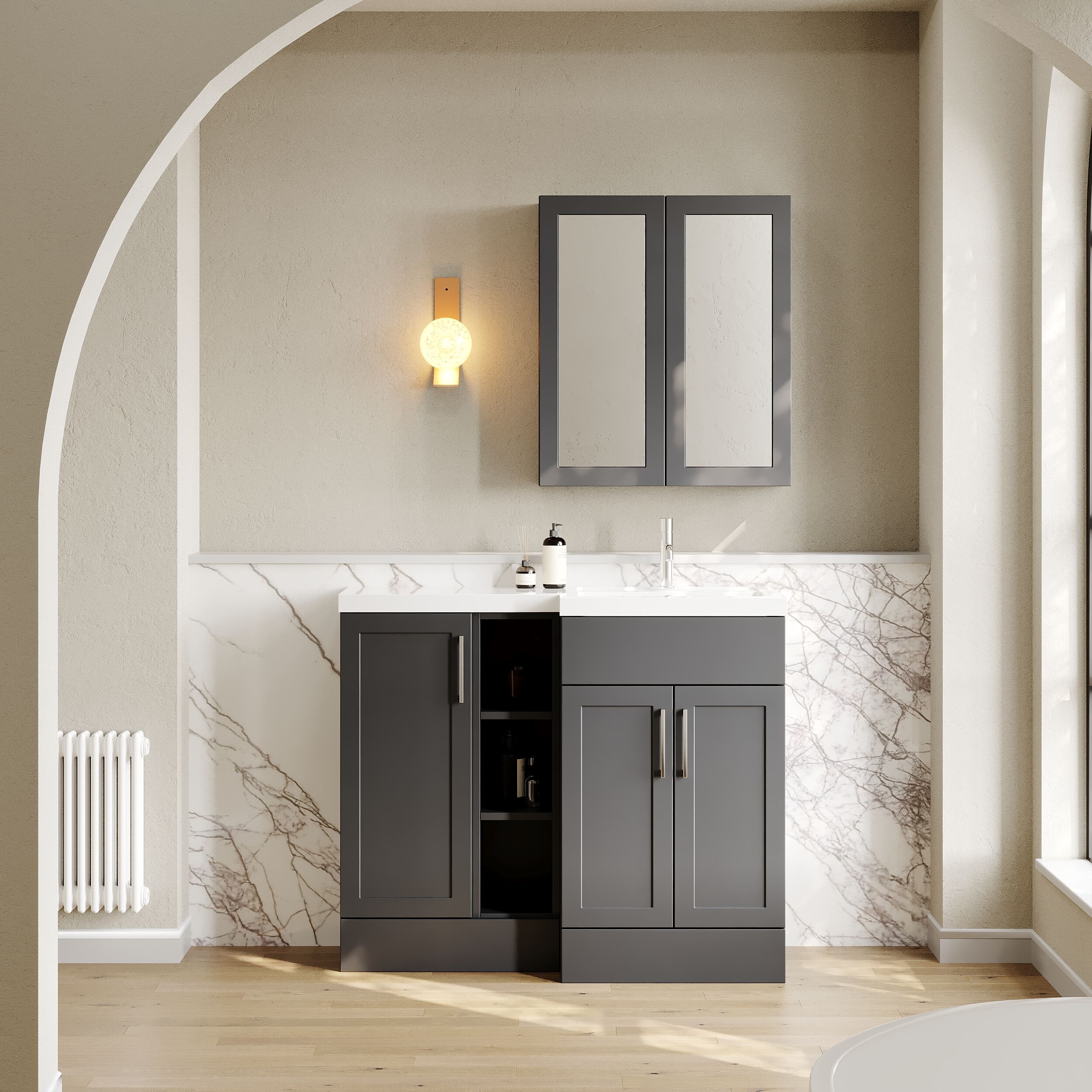 Nuie Lux Fable 1000mm Full Depth Combination Unit & L-Shaped Basin - Right Hand - Pebble Grey