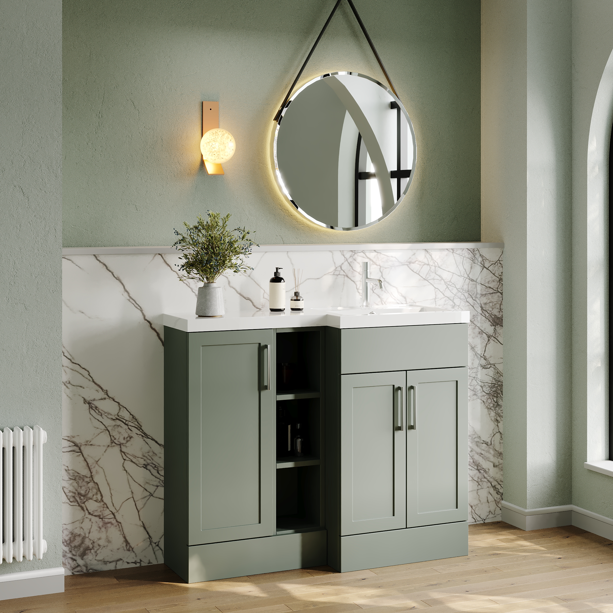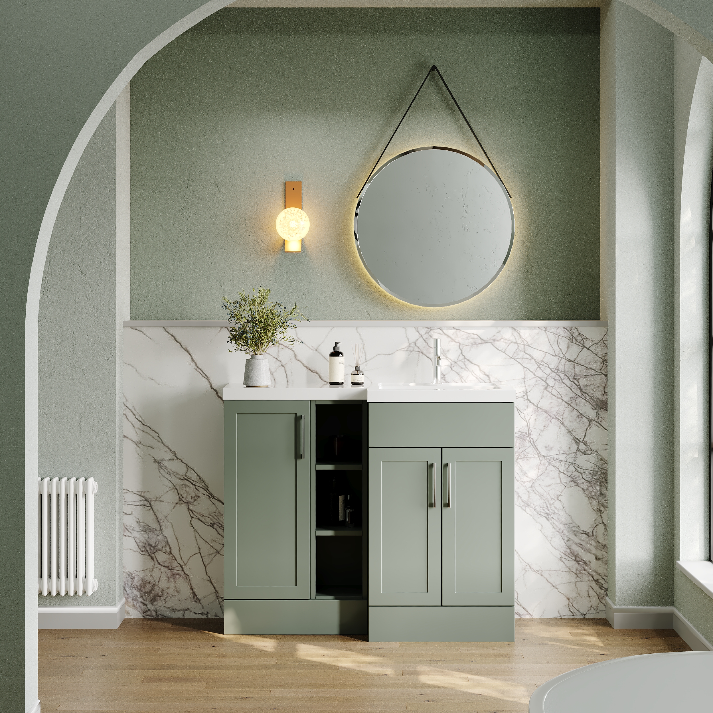Nuie Lux Fable 1000mm Fern Green Right Hand L-Shaped Basin Combination Unit With Handles & Soft Close Doors