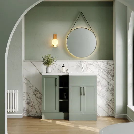 Nuie Lux Fable 1000mm Full Depth Combination Unit & L-Shaped Basin - Right Hand - Fern Green