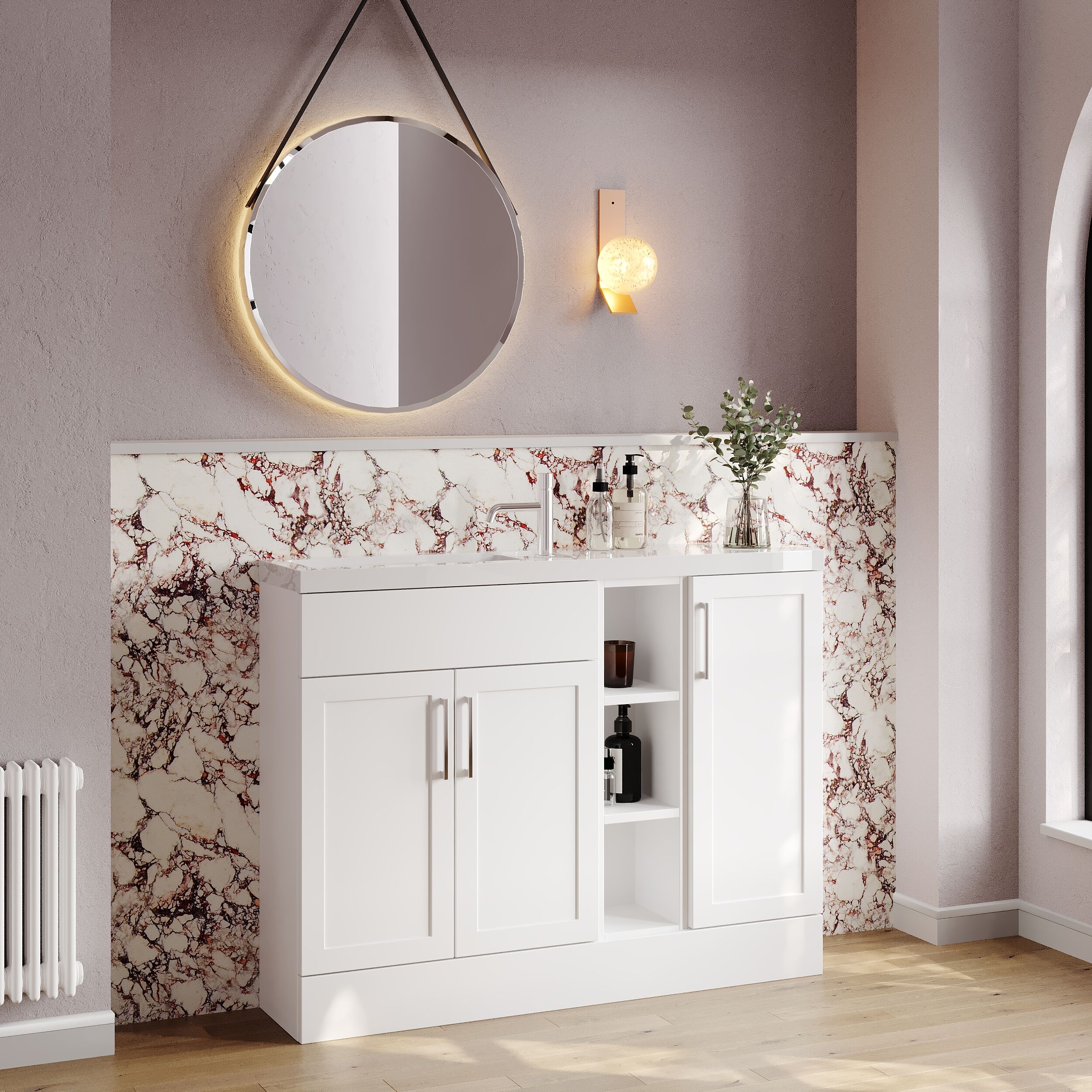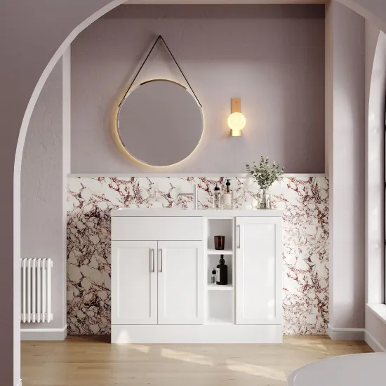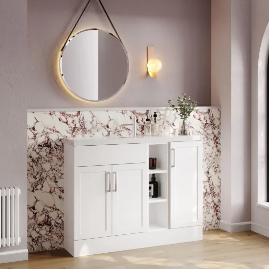 Nuie Lux Fable 1100mm Matt White Traditional Combination Unit & Basin with Soft Close Doors