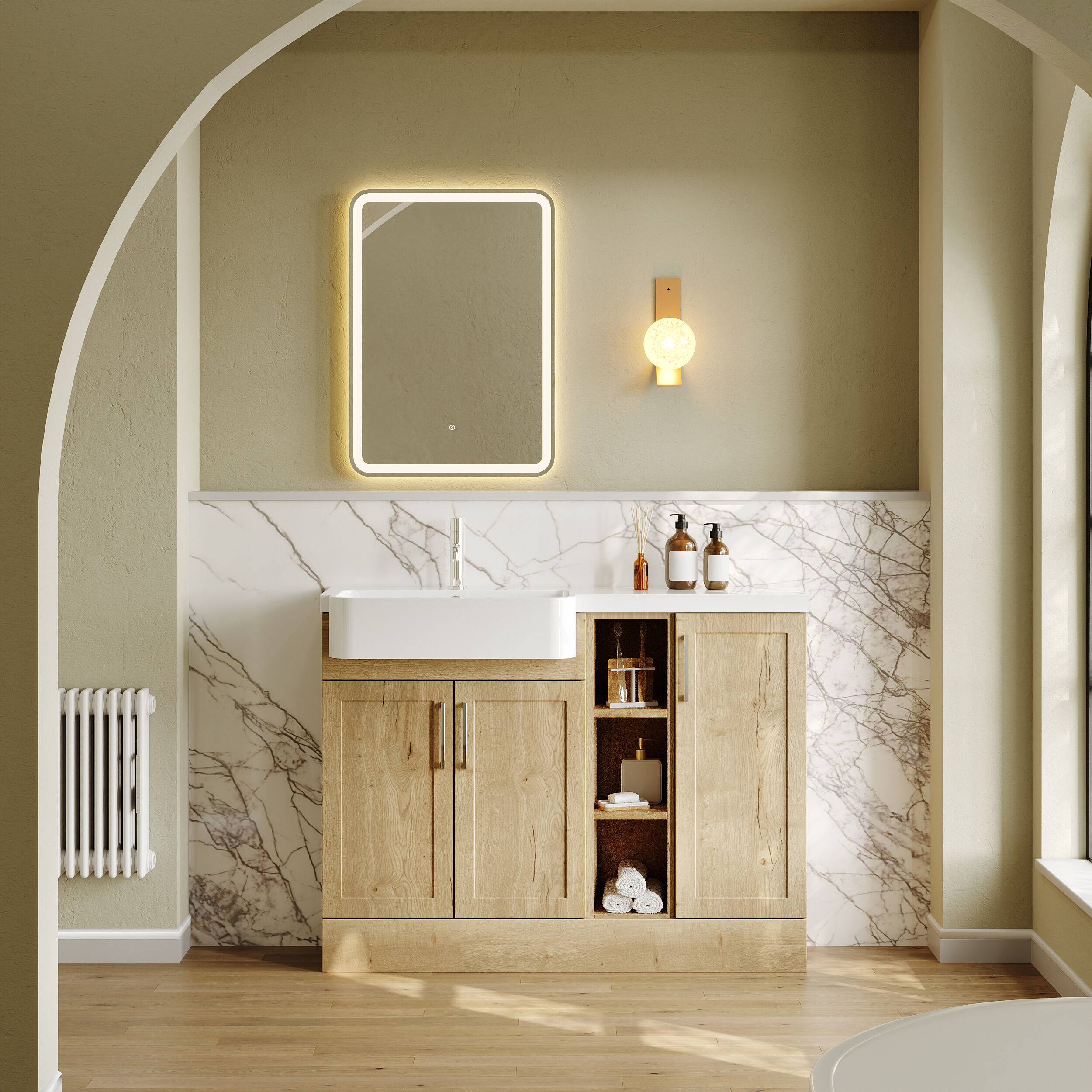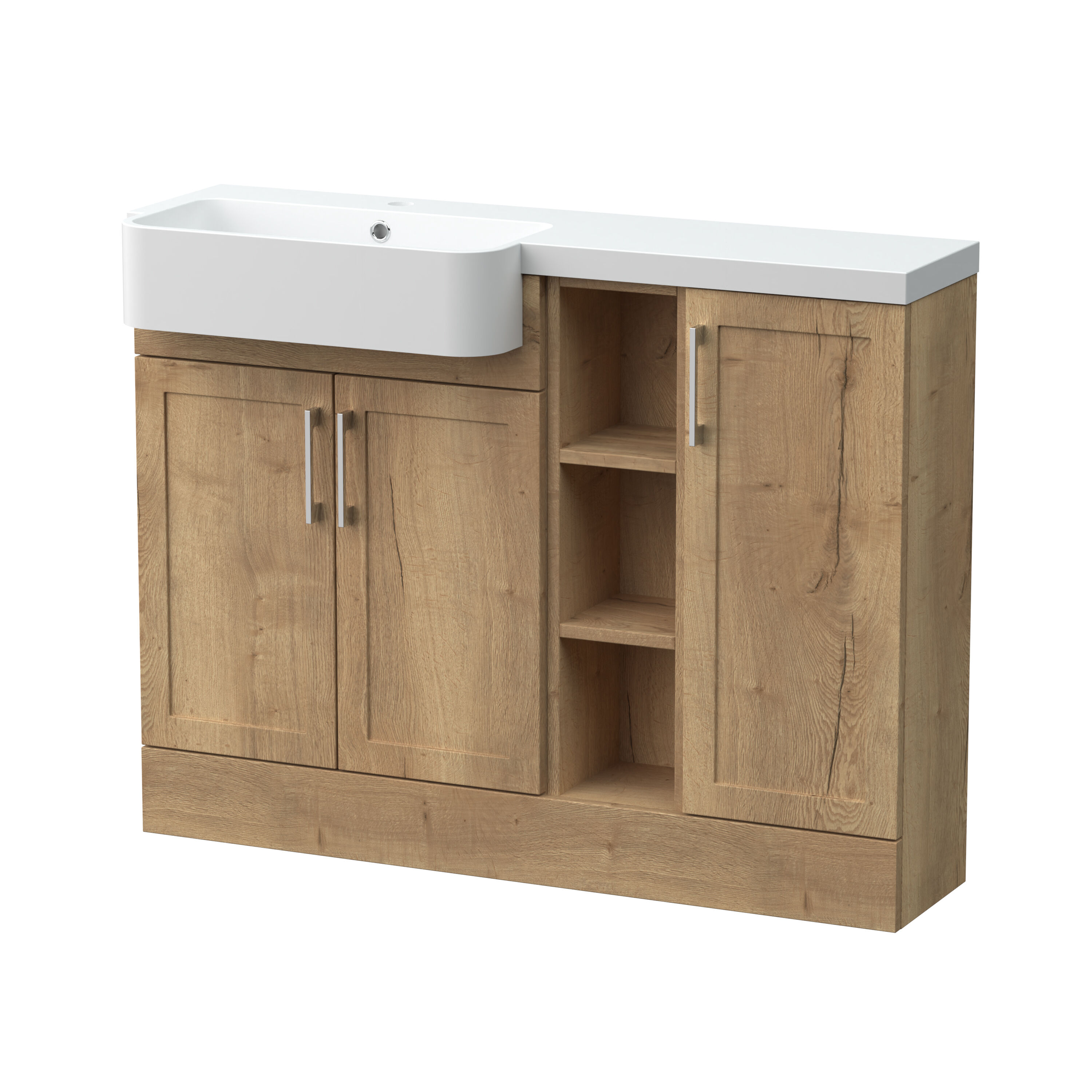 Nuie Lux Fable 1100mm Compact Combination Unit & Basin - Left Hand - Autumn Oak