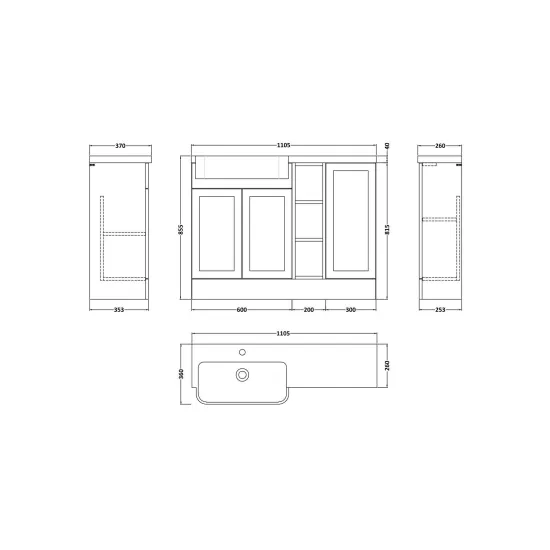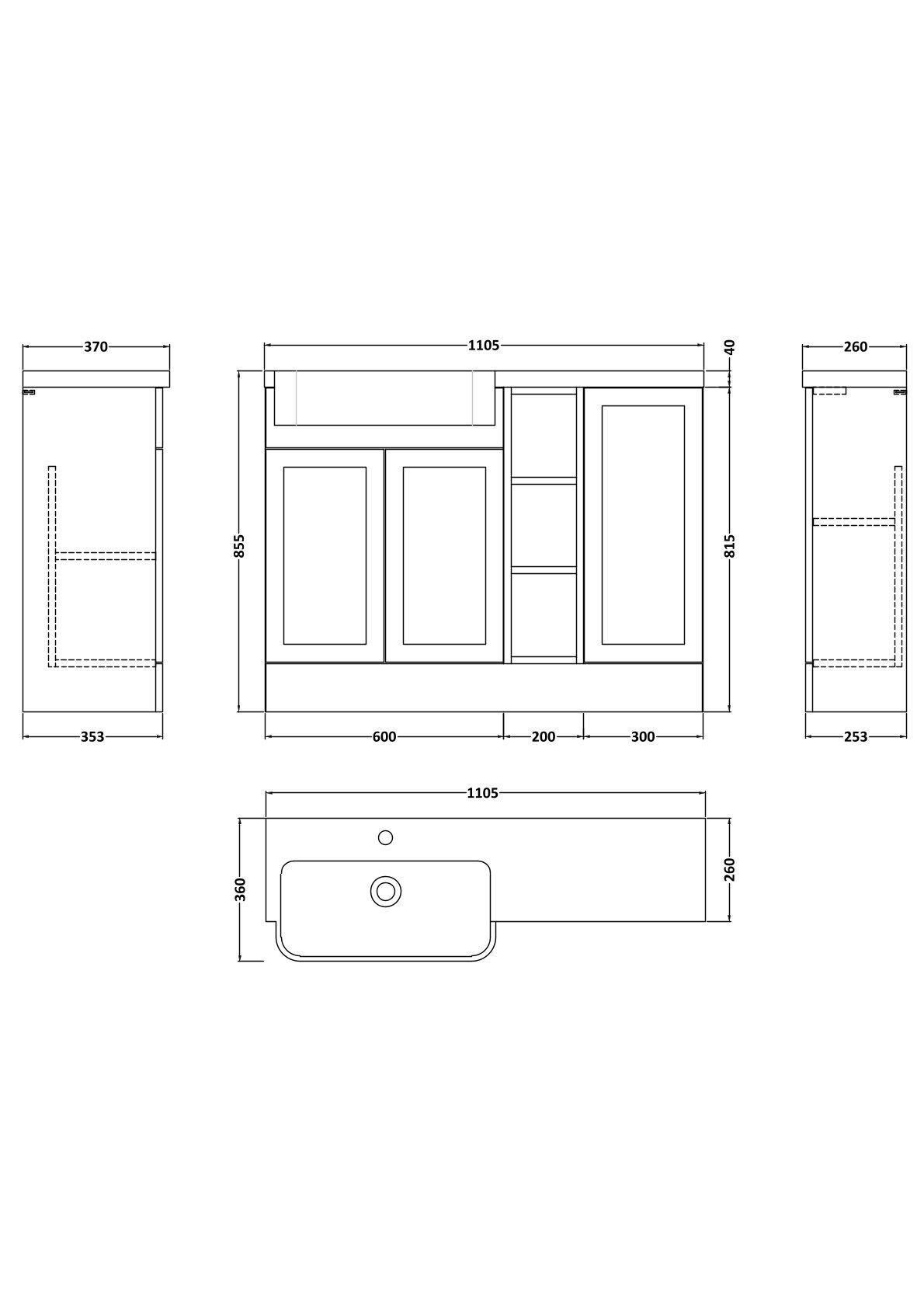 Supplied with luxury polymarble left-hand basin, predrilled with 1 tap hole and high quality handles.