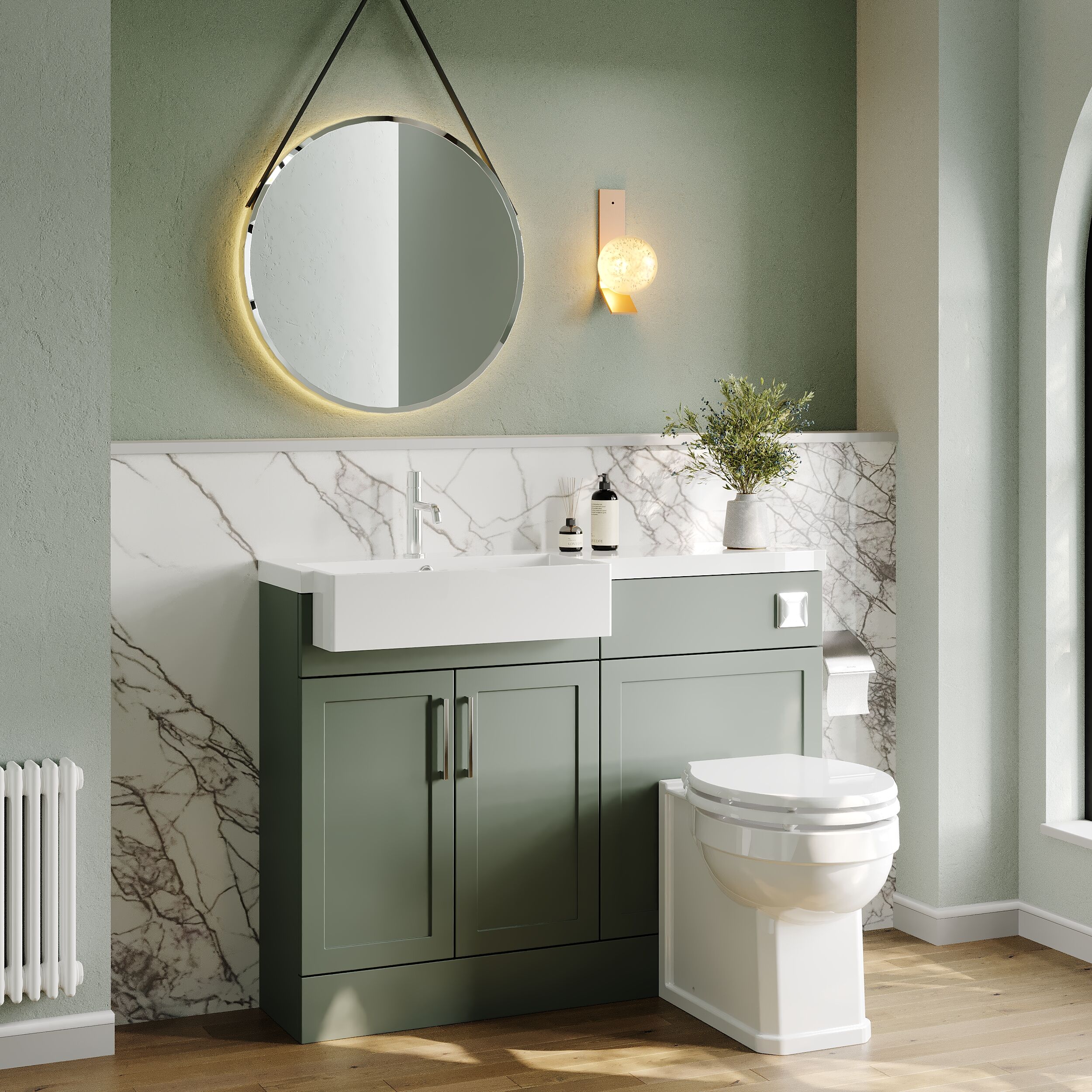 Nuie Lux Fable 1100mm Compact Combination Unit & Basin - Left Hand - Fern Green