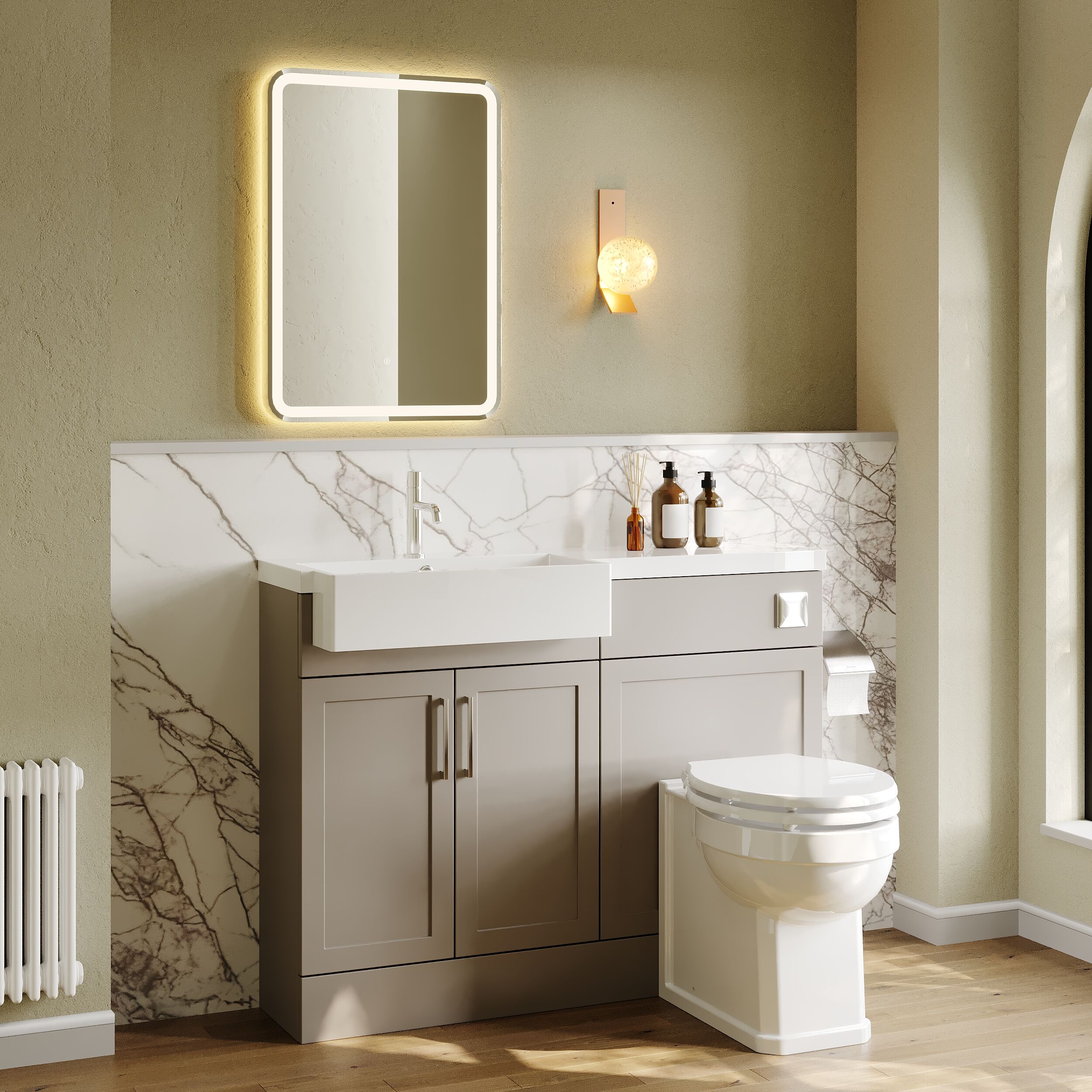 Nuie Lux Fable 1100mm Left Hand Pebble Grey Combination Unit & Basin Rigid Soft Close Doors