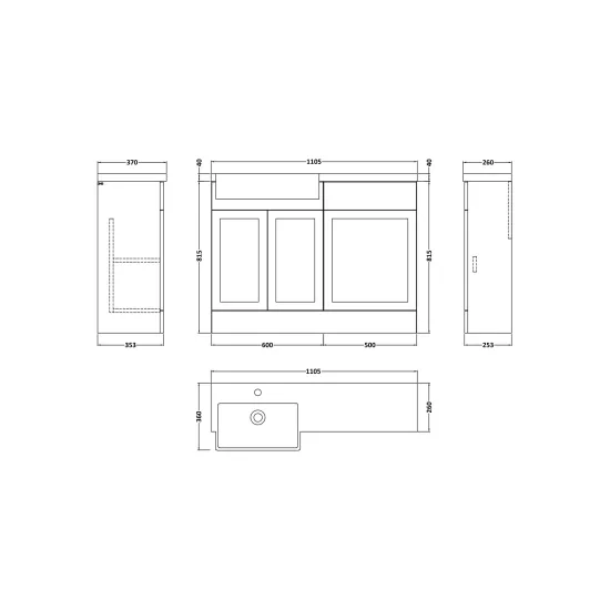 Supplied with luxury polymarble left-hand basin, predrilled with 1 tap hole and high quality handles.