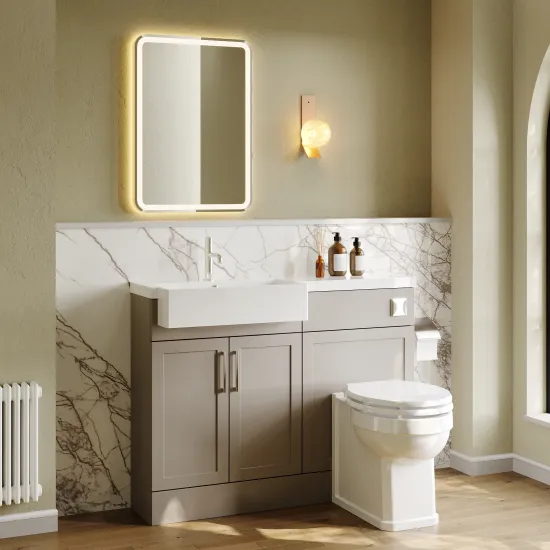 Nuie Lux Fable 1100mm Compact Combination Unit & Basin - Left Hand - Pebble Grey