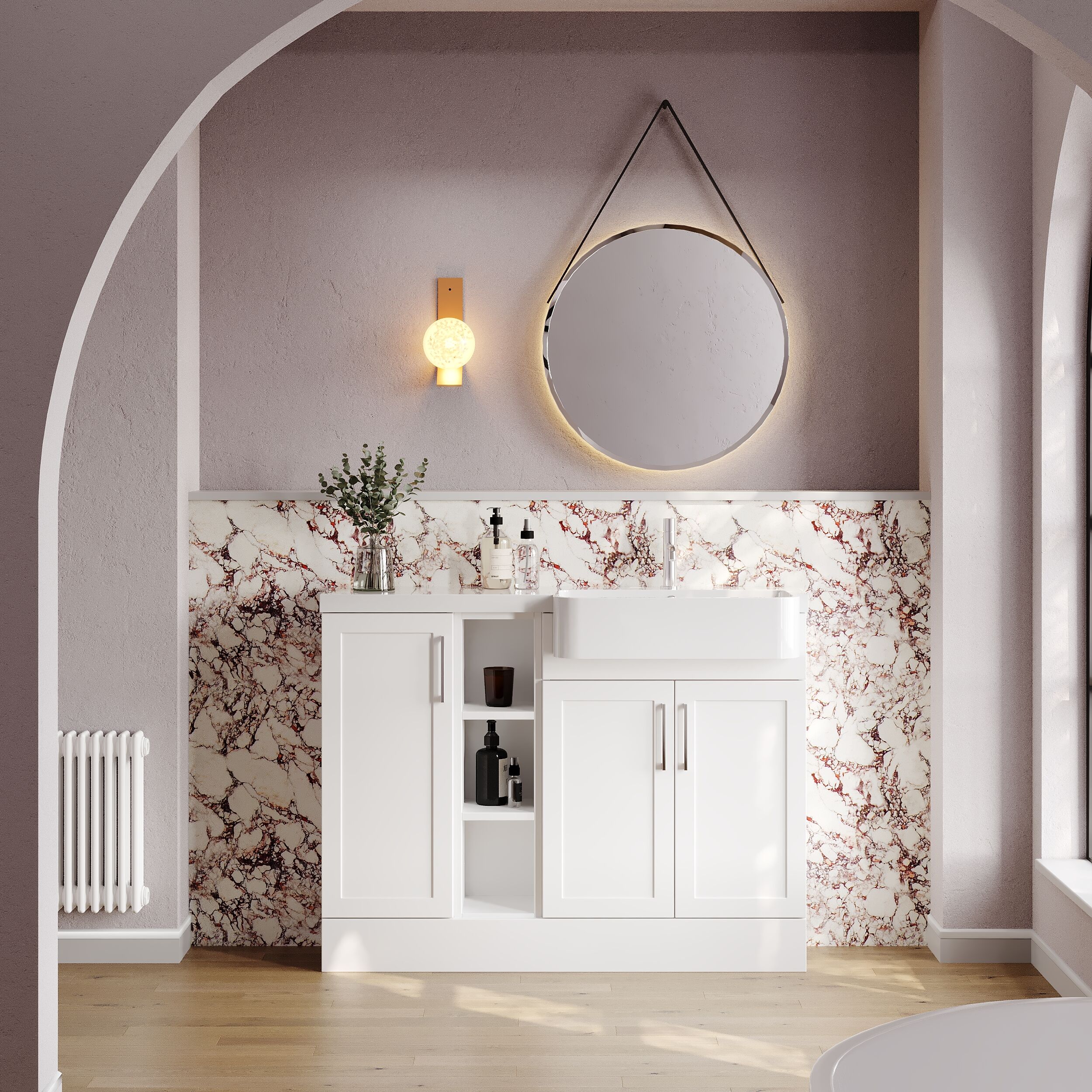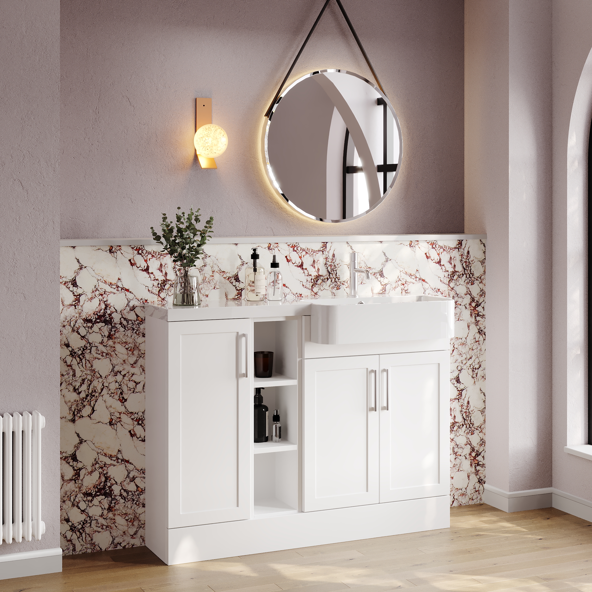 Nuie Lux Fable 1100mm Compact Combination Unit & Basin - Right Hand - Matt White