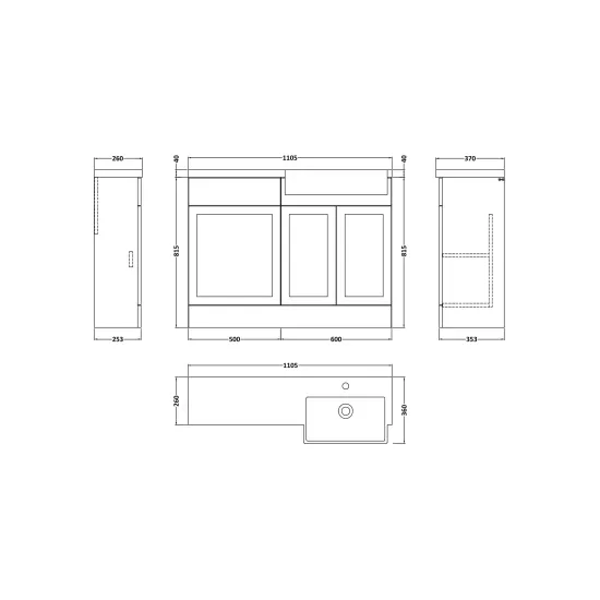 Supplied with luxury polymarble right-hand basin, predrilled with 1 tap hole and high quality handles.