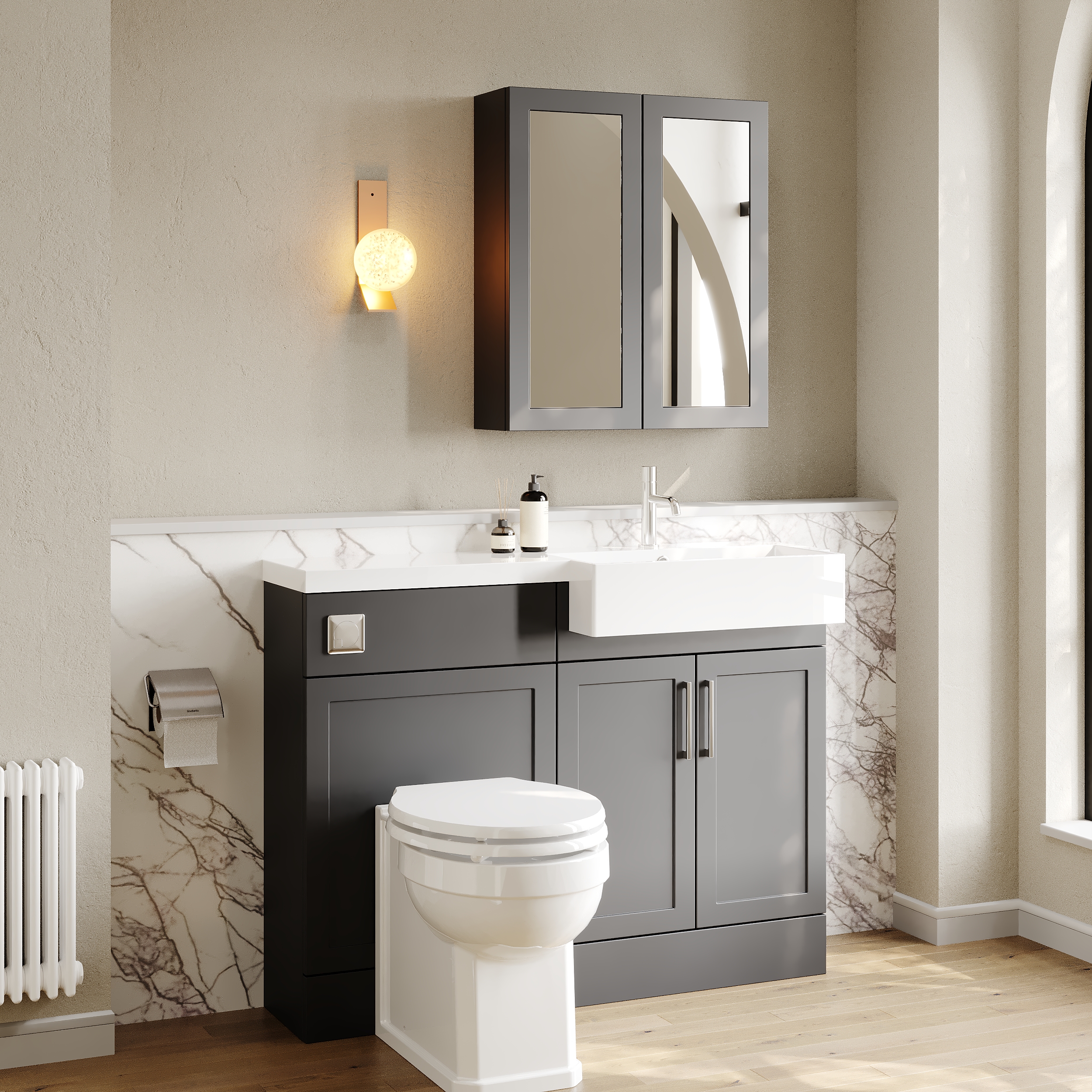 Nuie Lux Fable 1100mm Compact Combination Unit & Basin - Right Hand - Soft Black
