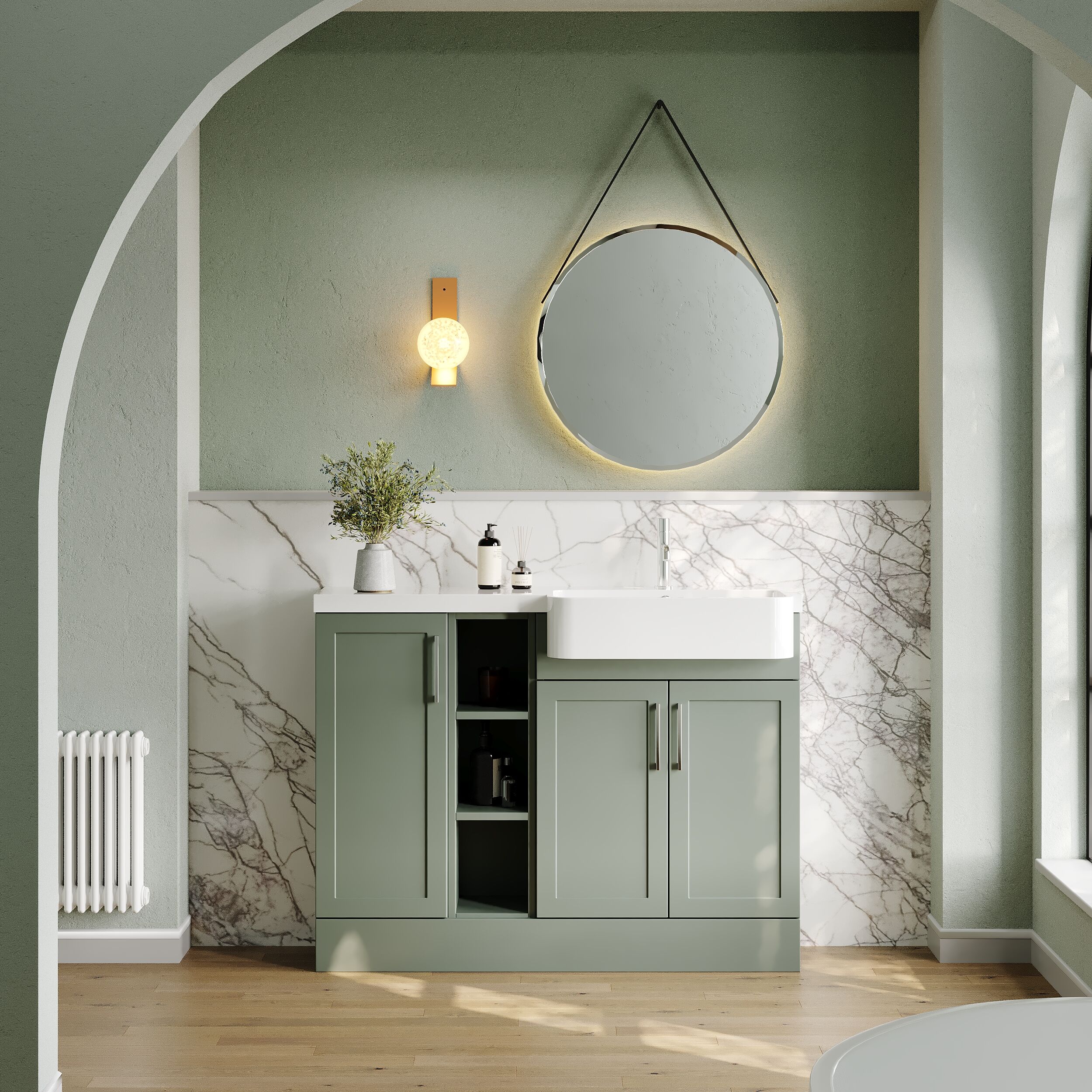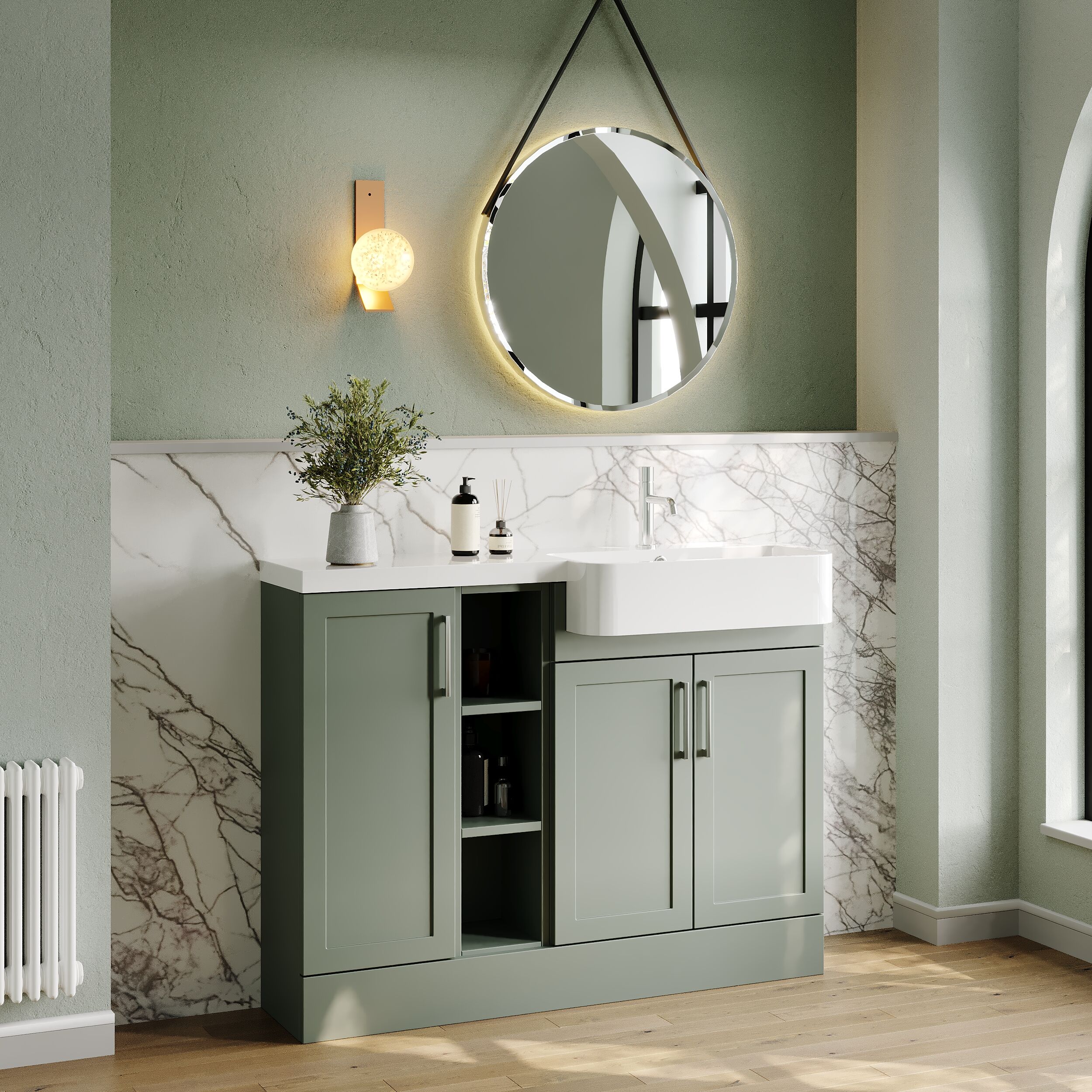 Nuie Lux Fable 1100mm Compact Combination Unit & Basin - Right Hand - Fern Green