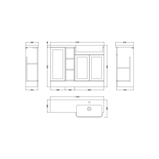 Supplied with luxury polymarble right-hand basin, predrilled with 1 tap hole and high quality handles.