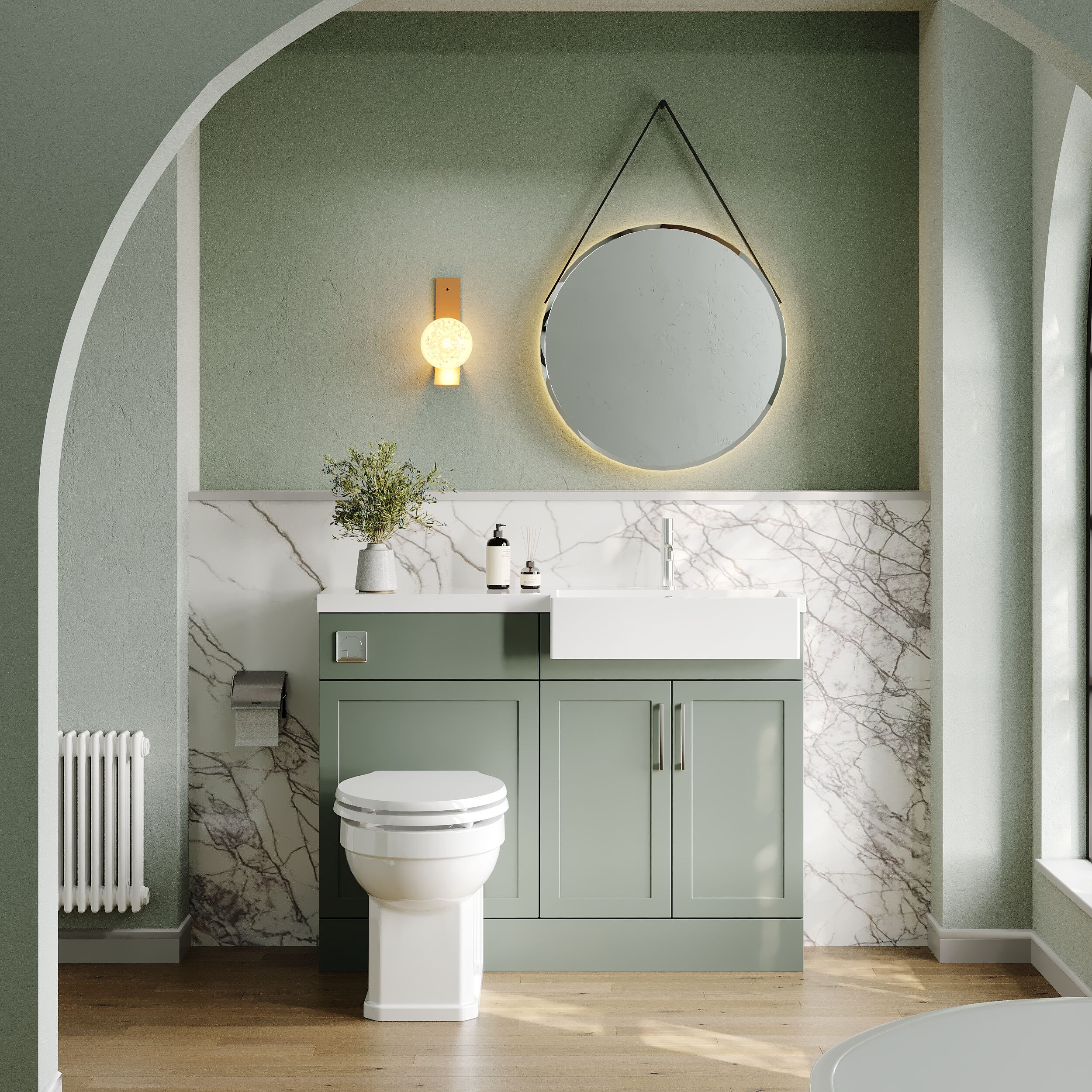 Nuie Lux Fable 1100mm Right Hand Fern Green Combination Unit & Basin Rigid Soft Close
