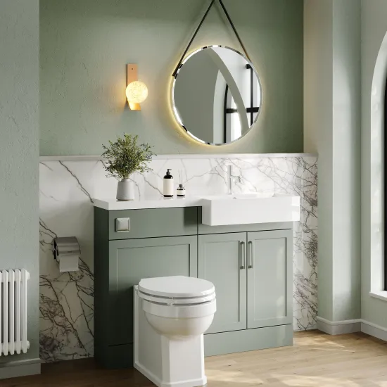 Nuie Lux Fable 1100mm Compact Combination Unit & Basin - Right Hand - Fern Green