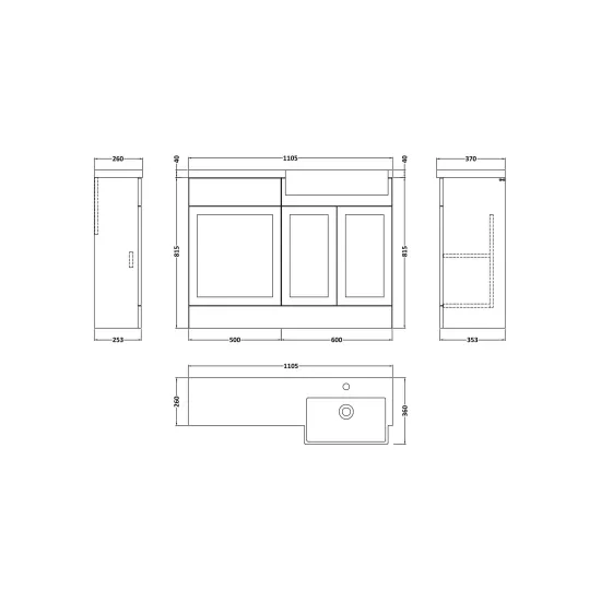 Supplied with luxury polymarble right-hand basin, predrilled with 1 tap hole and high quality handles.