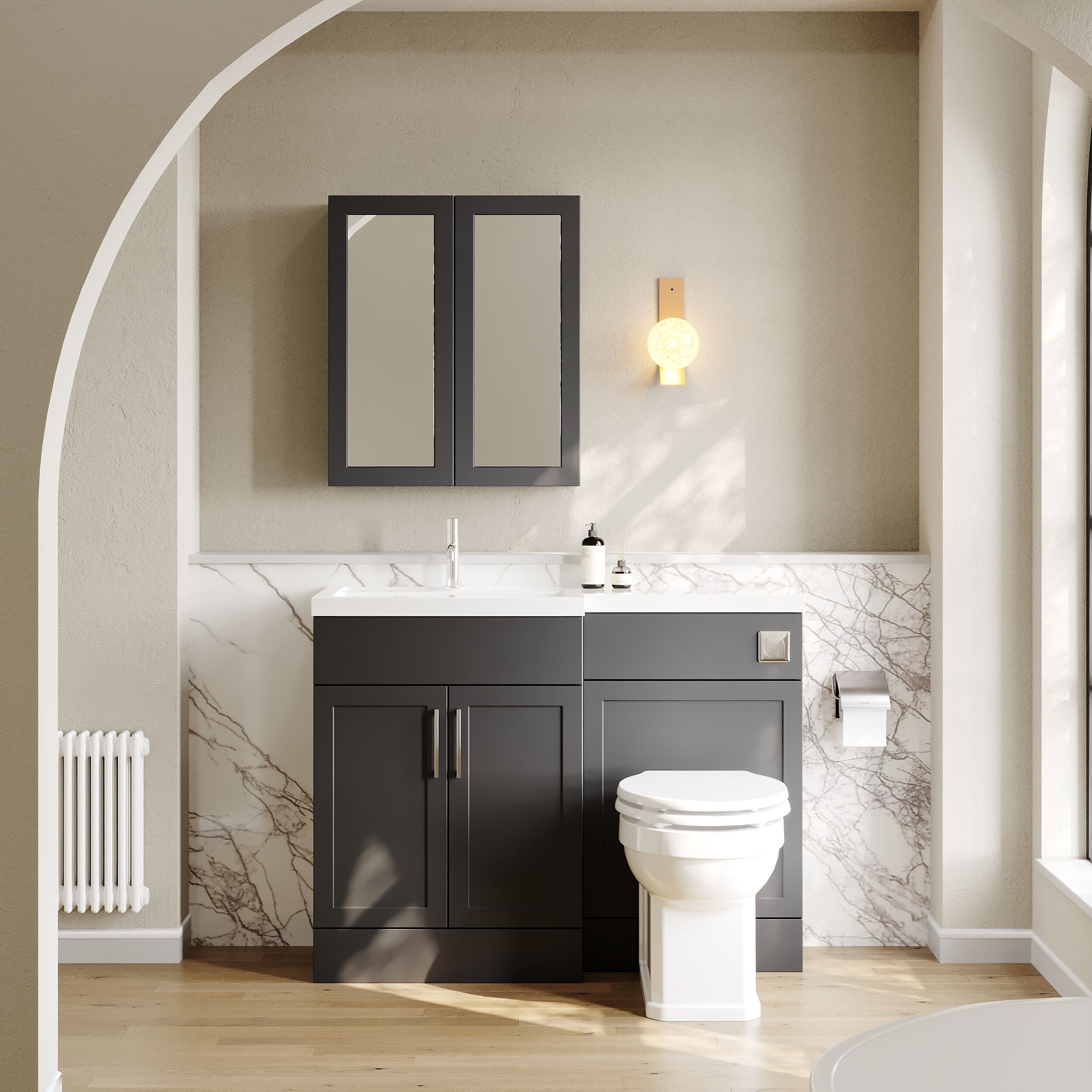 Nuie Lux Fable 1100mm Combination Unit with L-Shaped Basin - Left Hand, Rigid & Soft Close