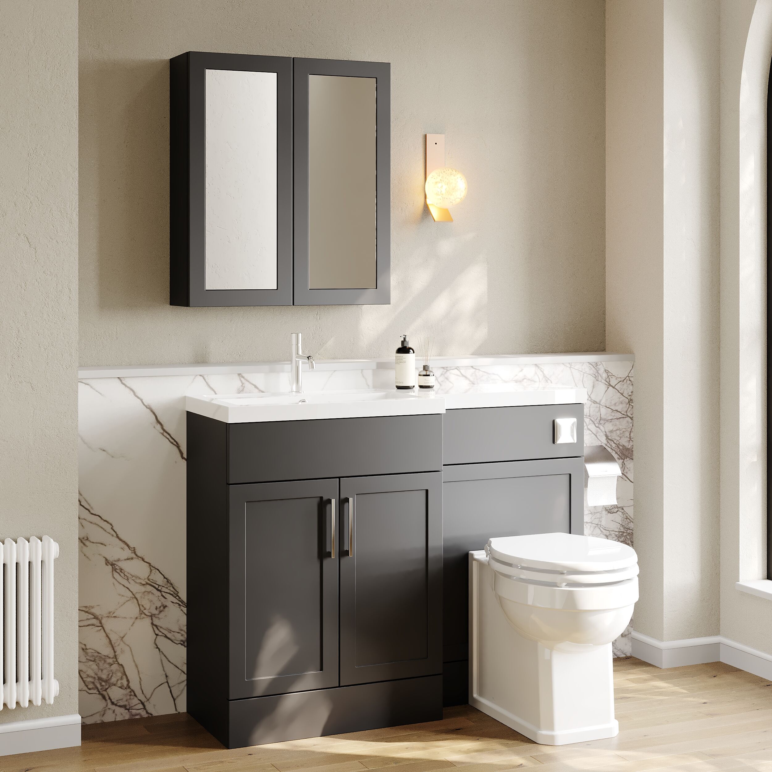 Nuie Lux Fable 1100mm Full Depth Combination Unit & L-Shaped Basin - Left Hand - Soft Black