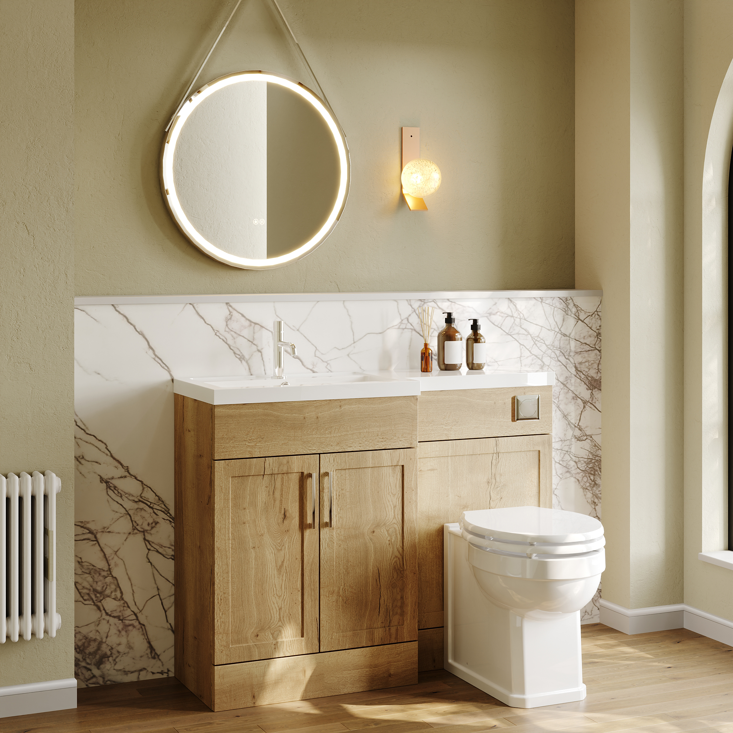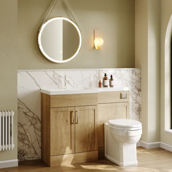 Nuie Lux Fable 1100mm Full Depth Combination Unit & L-Shaped Basin - Left Hand - Autumn Oak