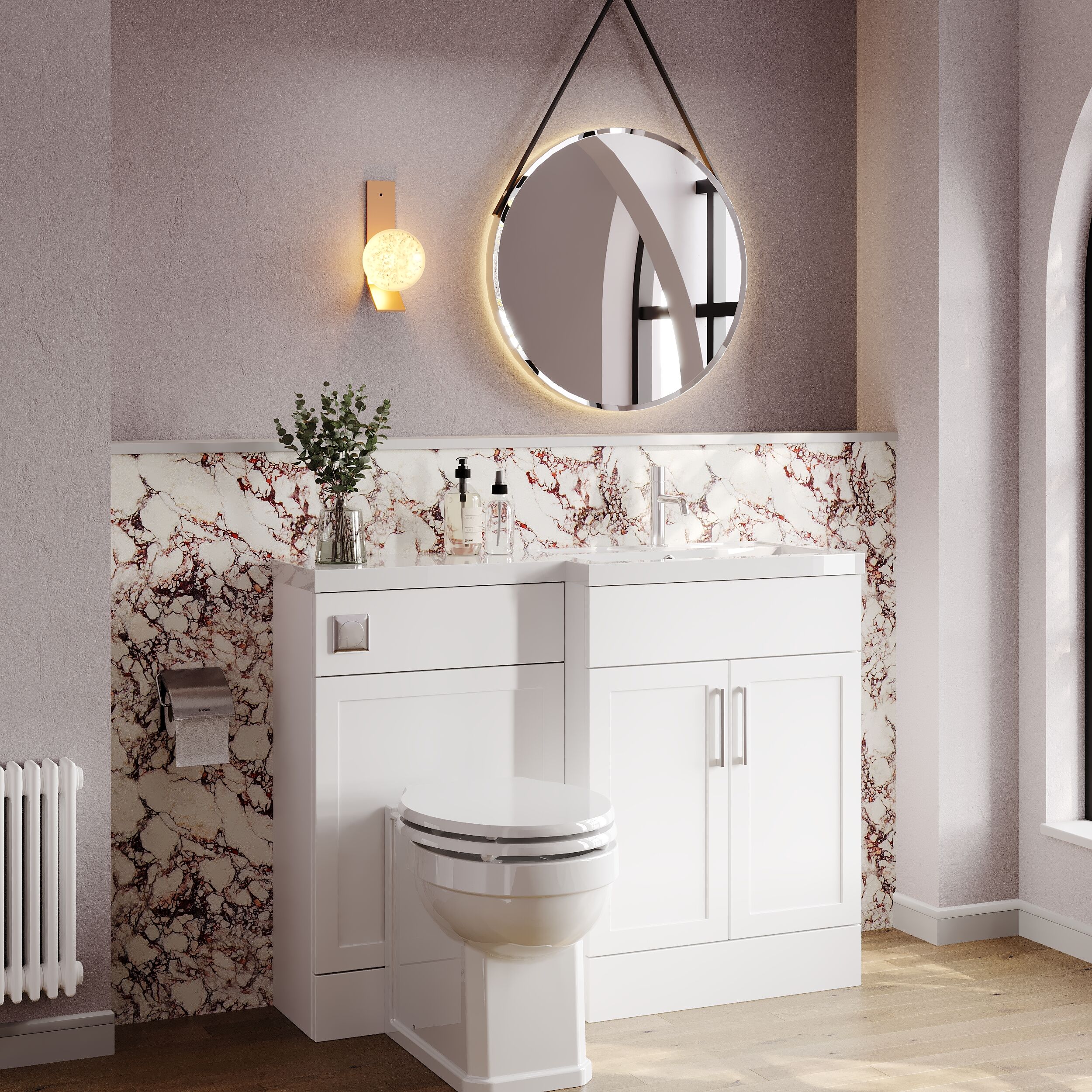 Nuie Lux Fable 1100mm Full Depth Combination Unit & L-Shaped Basin - Right Hand - Matt White