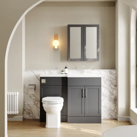 Nuie Lux Fable 1100mm Soft Black Traditional Combination Unit & L-Shaped Basin Rigid Soft Close