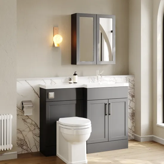 Nuie Lux Fable 1100mm Full Depth Combination Unit & L-Shaped Basin - Right Hand - Soft Black