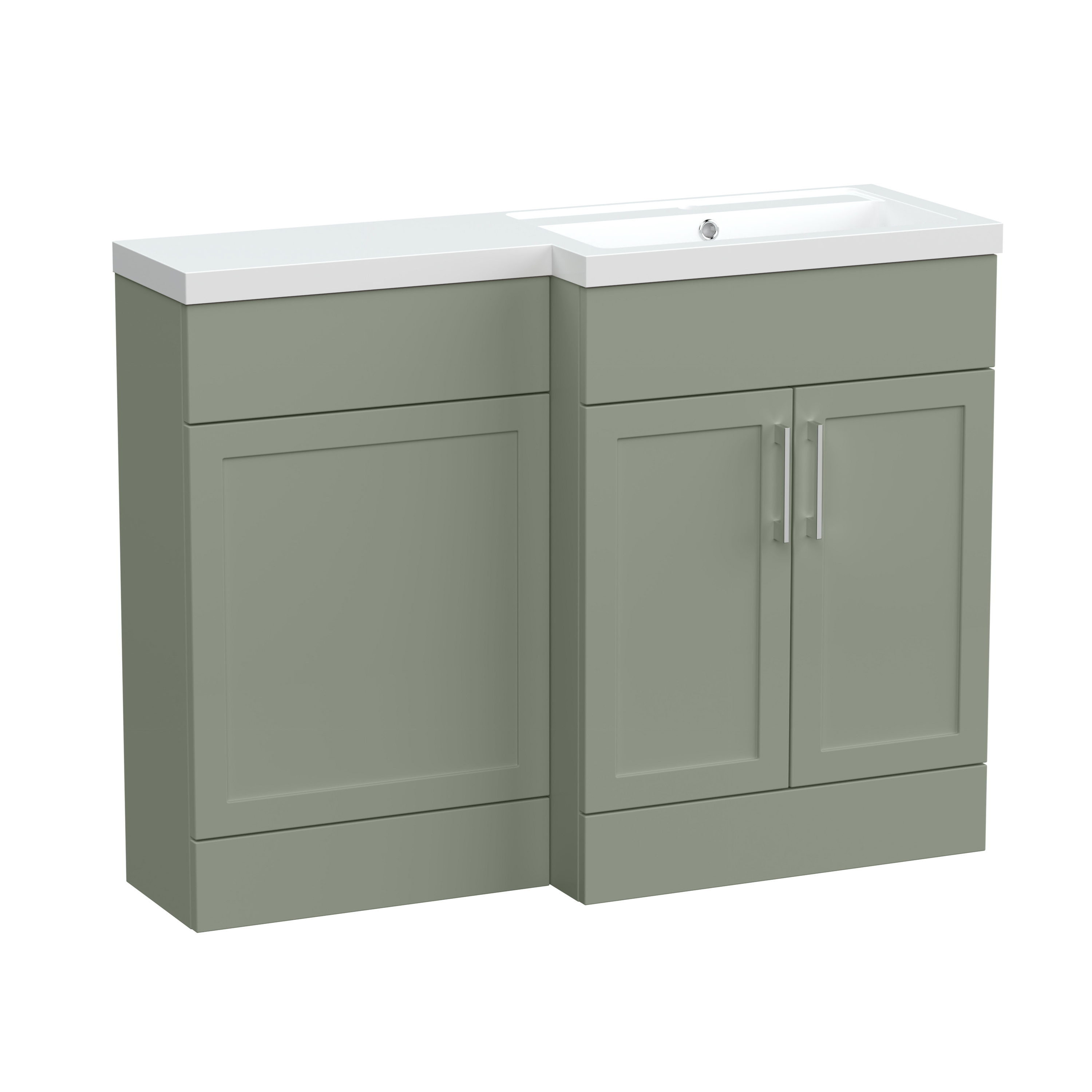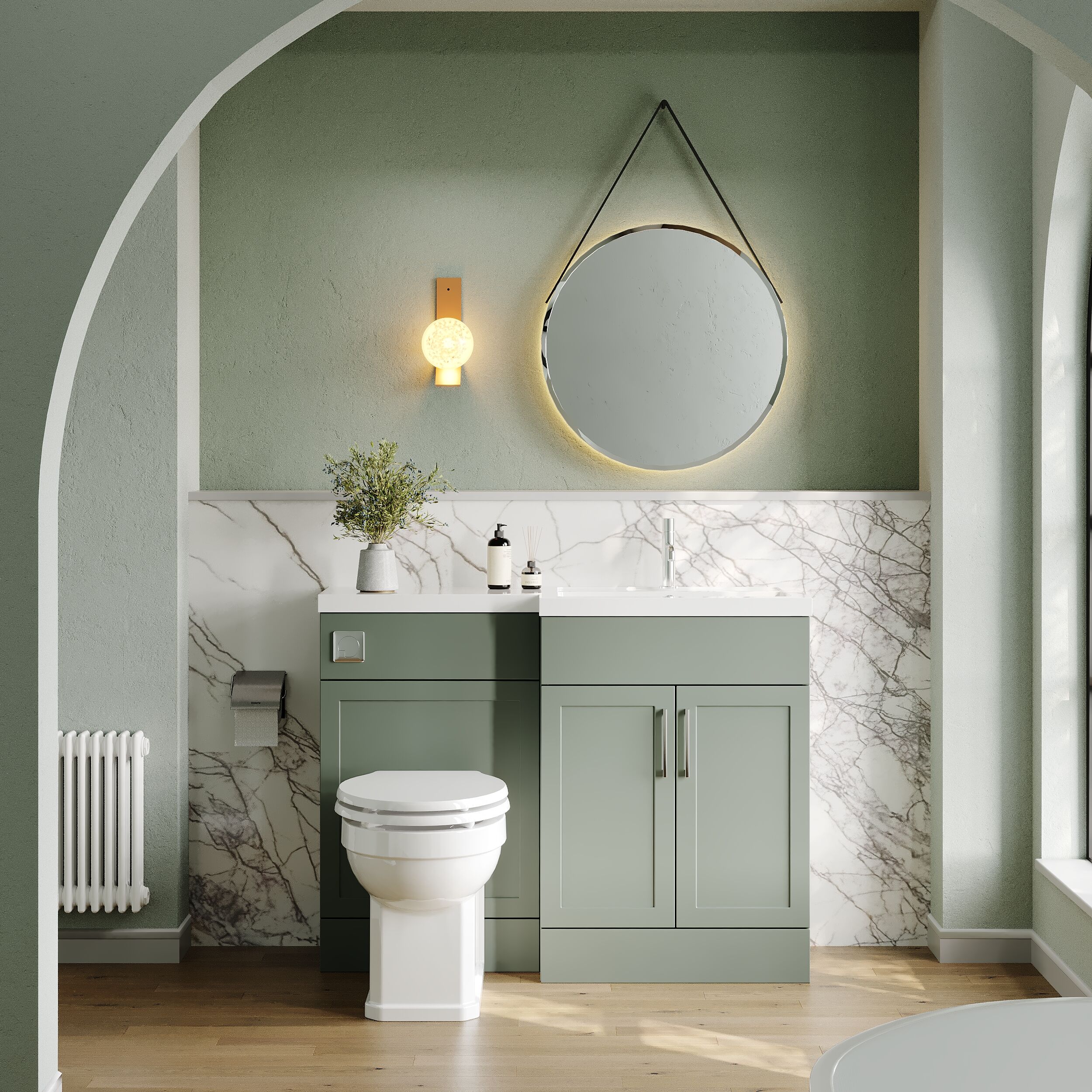 Nuie Lux Fable 1100mm Fern Green Traditional Combination Unit with L-Shaped Basin Right Hand with Soft Close Doors