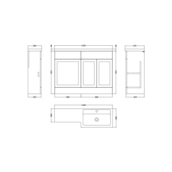 Nuie Lux Fable Traditional 1100mm Pebble Grey Right Hand Combination Unit & L-Shaped Basin
