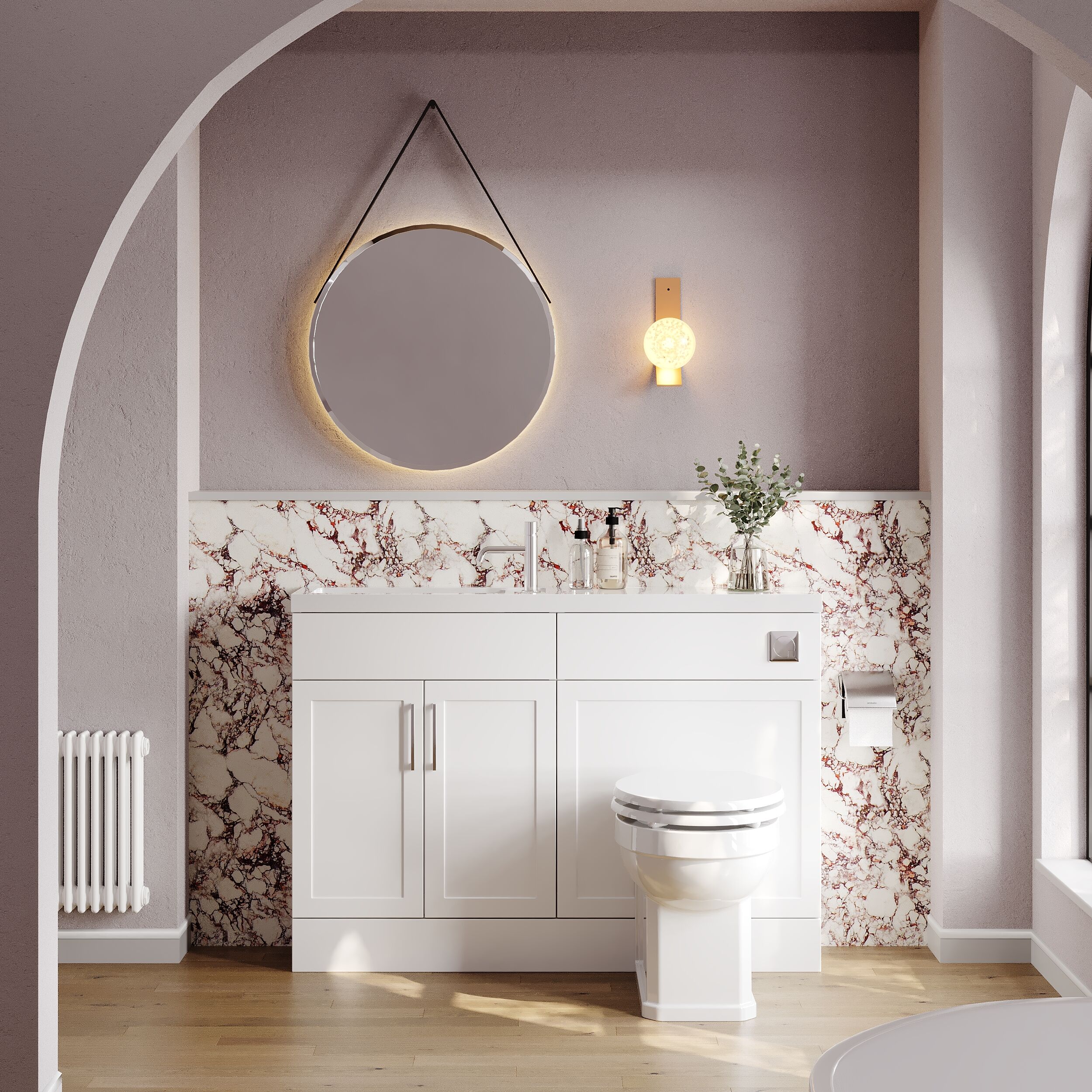 Nuie Lux Fable Traditional 1205mm Matt White Combination Unit & Basin With Soft Close Doors