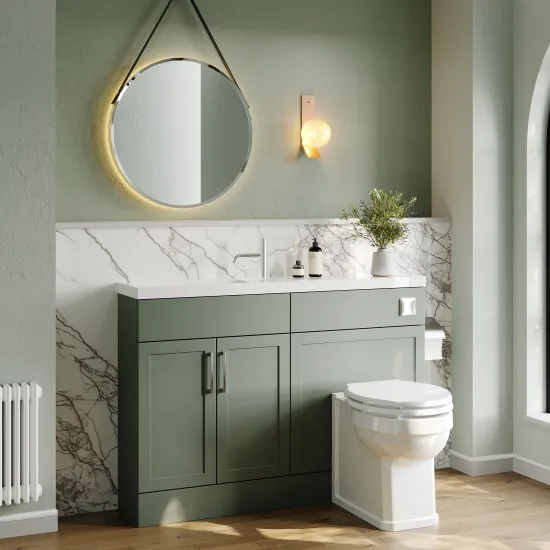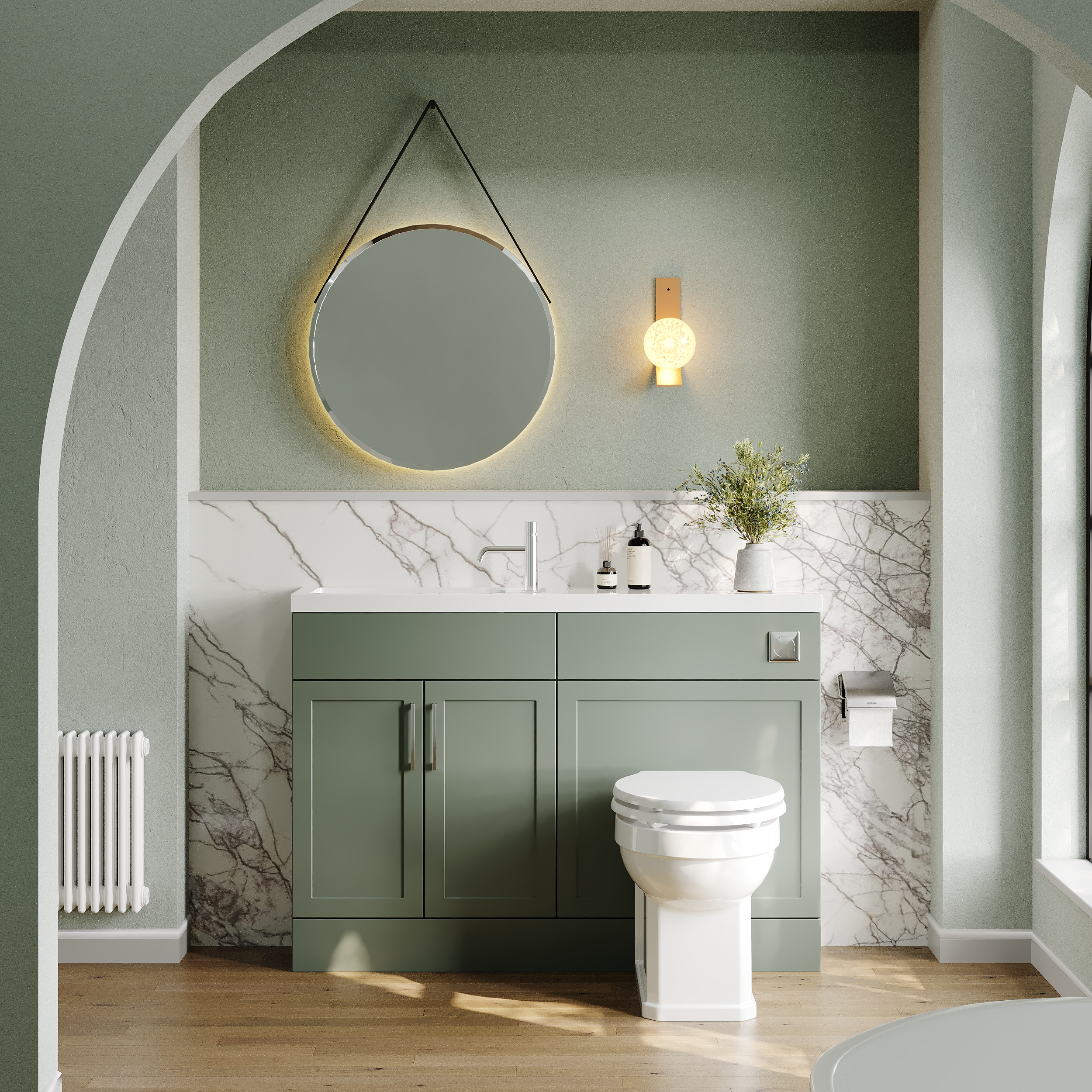 Nuie Lux Fable 1200mm Fern Green Traditional Combination Unit & Basin With Soft Close Doors & Handles