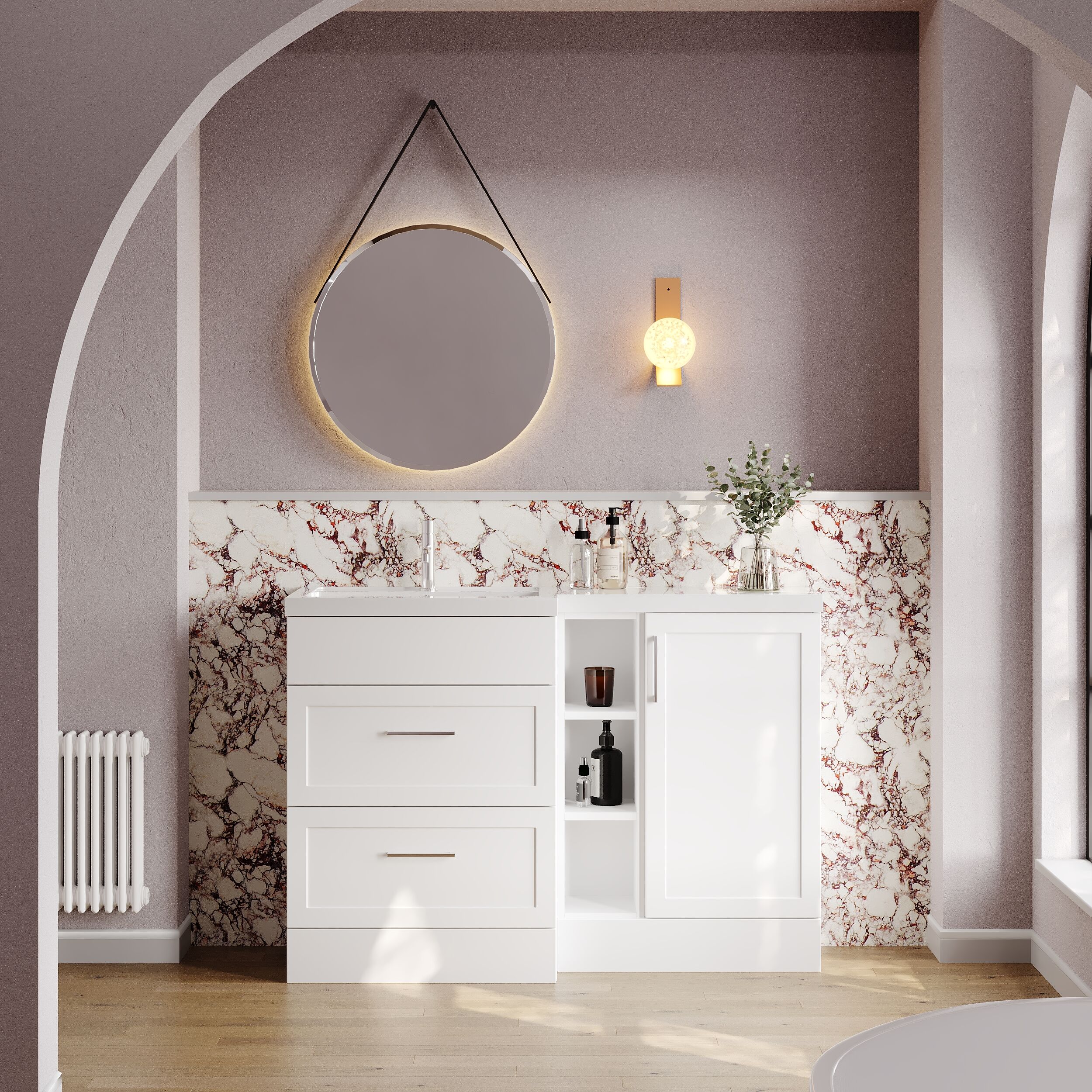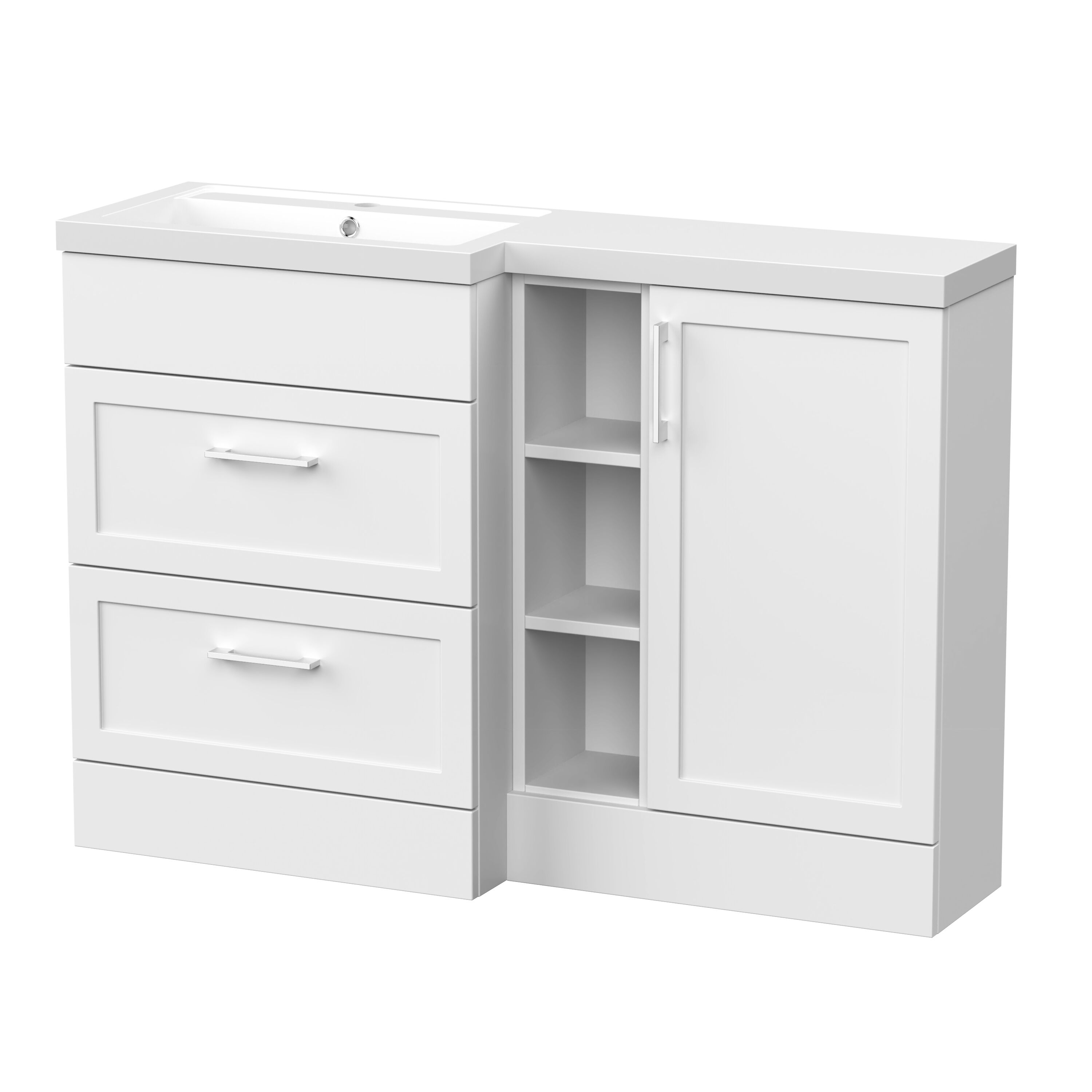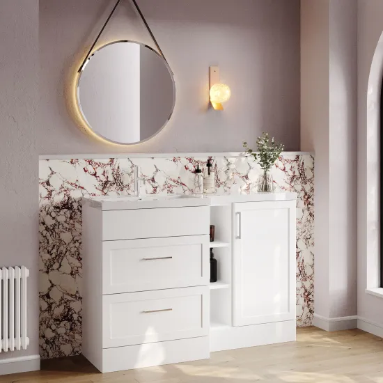 Nuie Lux Fable 1200mm Full Depth Combination Unit & L-Shaped Basin - Left Hand - Matt White