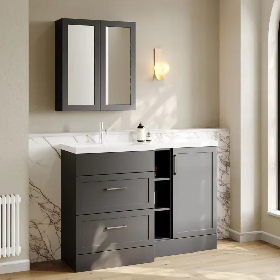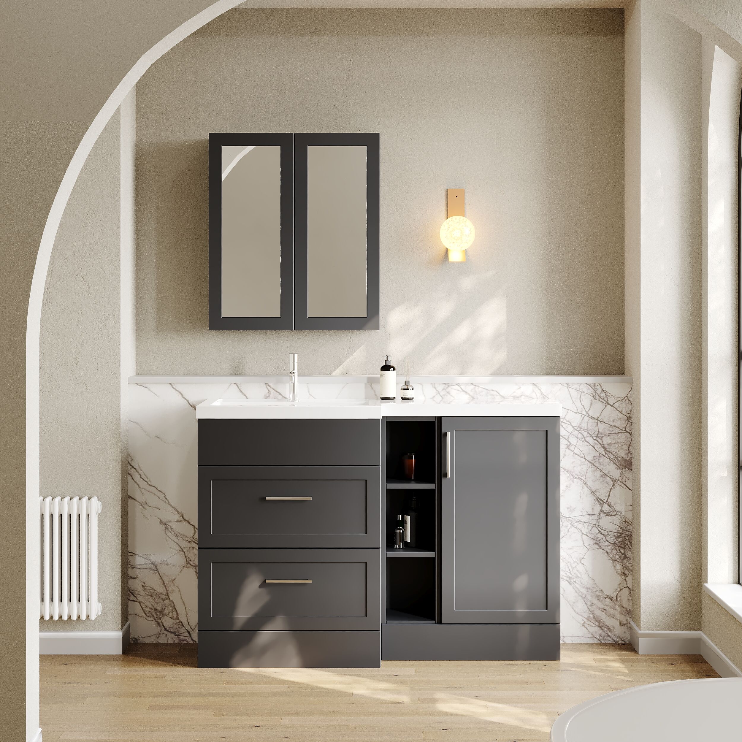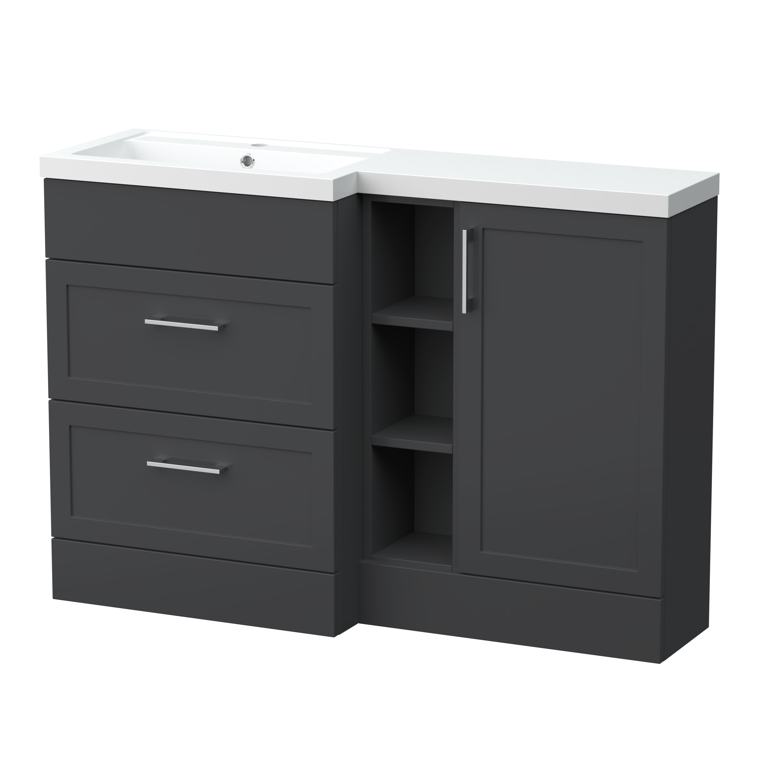 Nuie Lux Fable 1200mm Soft Black Left Hand Combination Unit with L-Shaped Basin With Soft Close Doors & Drawers