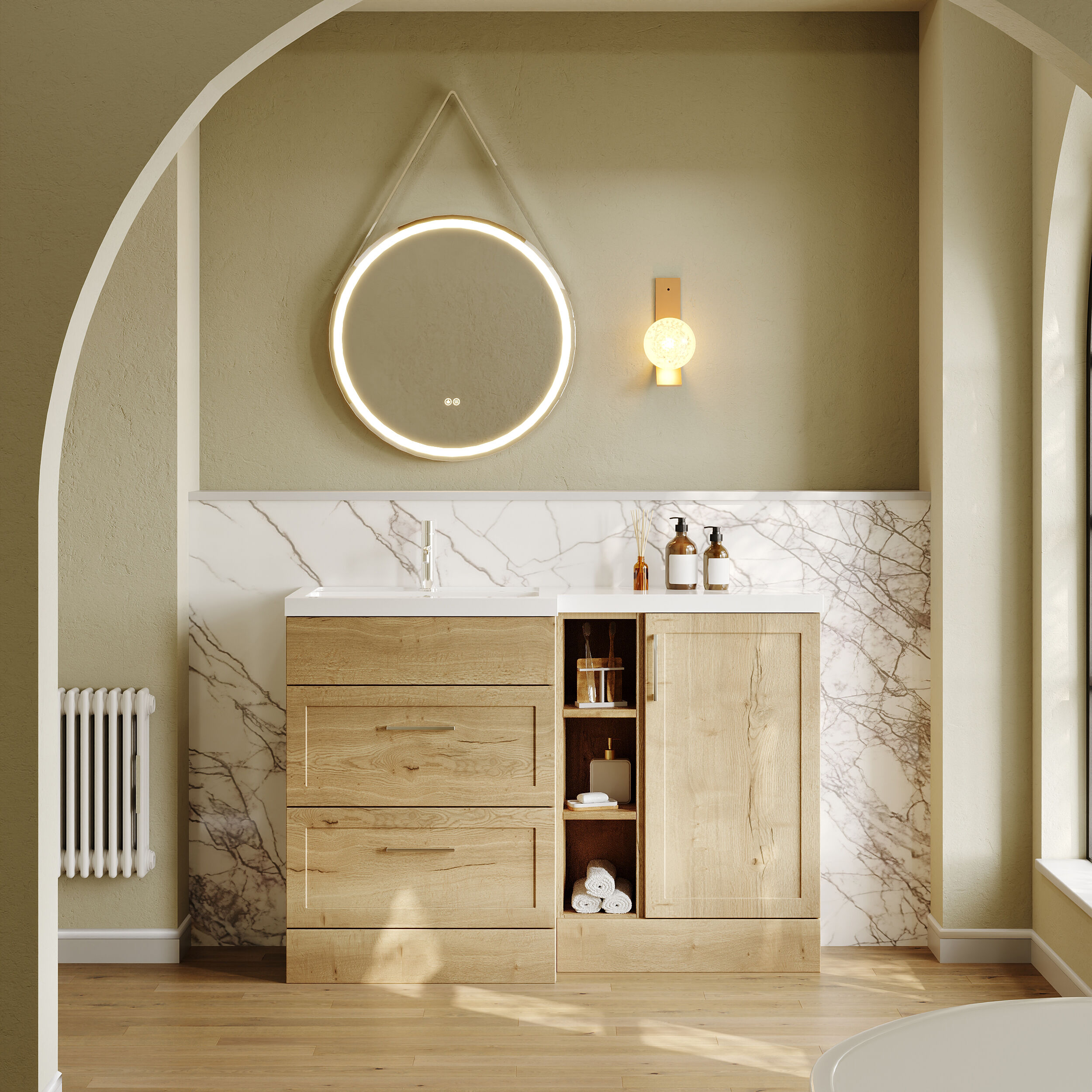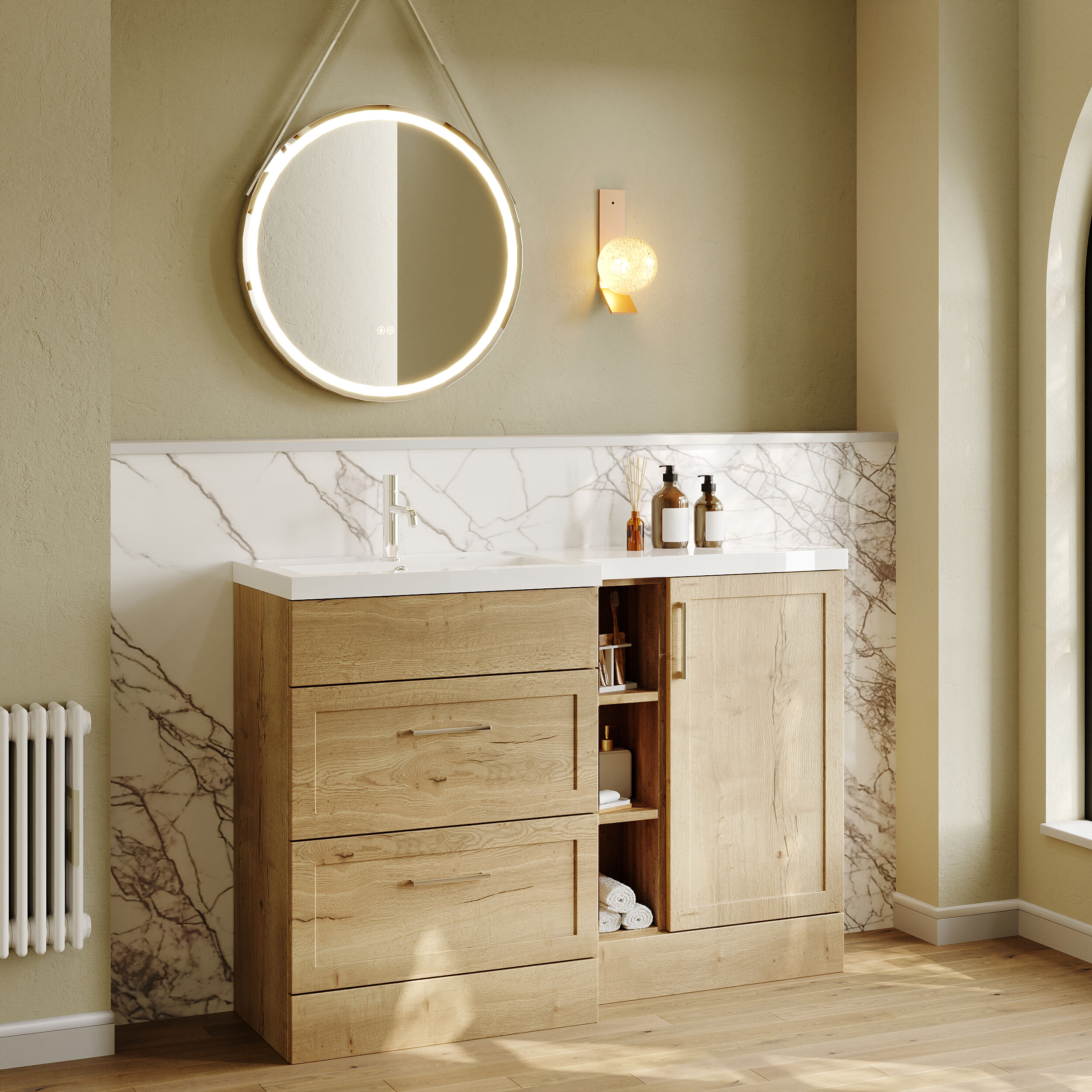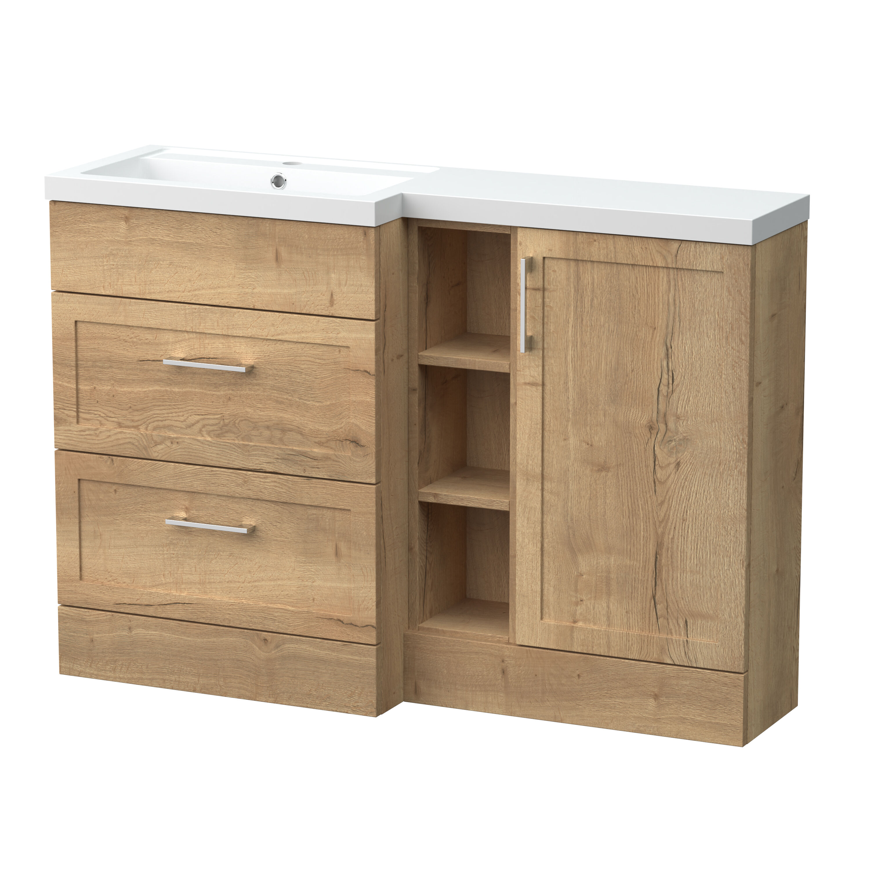 Nuie Lux Fable 1200mm Full Depth Combination Unit & L-Shaped Basin - Left Hand - Autumn Oak