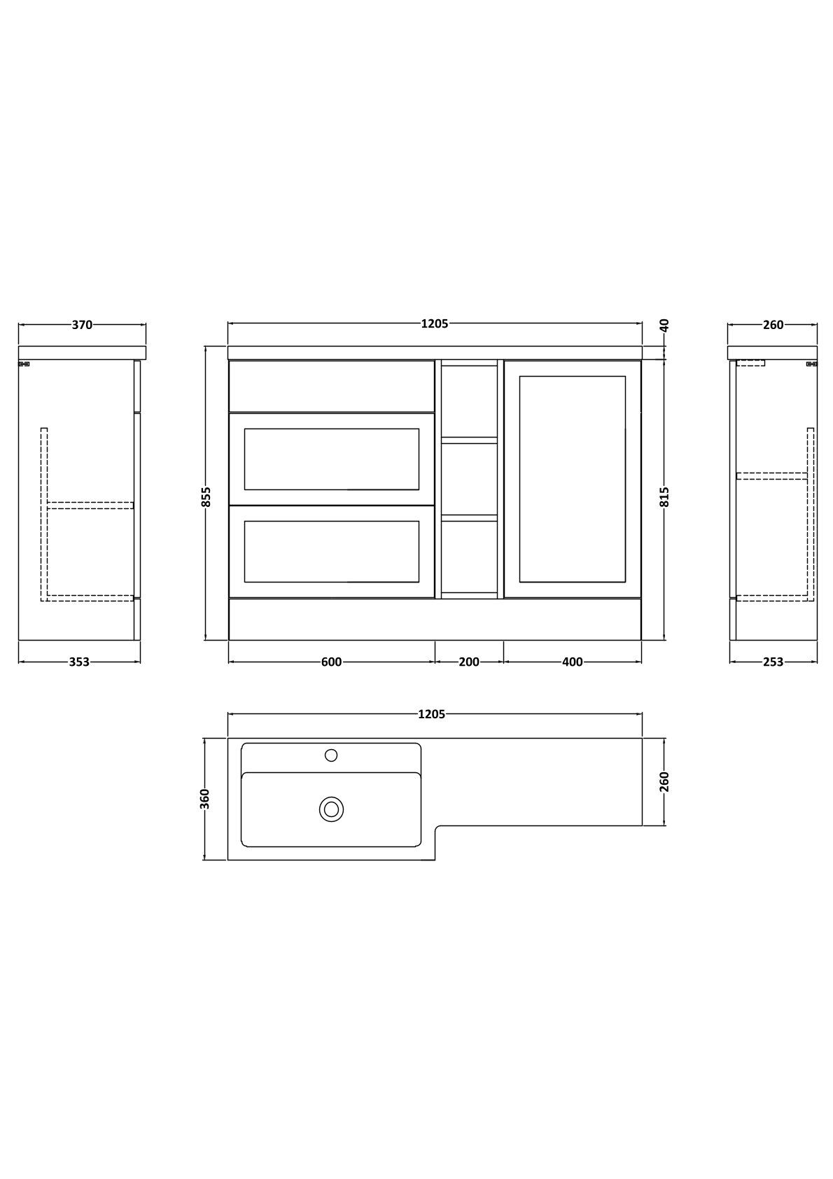 Nuie Lux Fable 1200mm Combination Unit with L-Shaped Basin - Left Hand