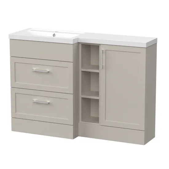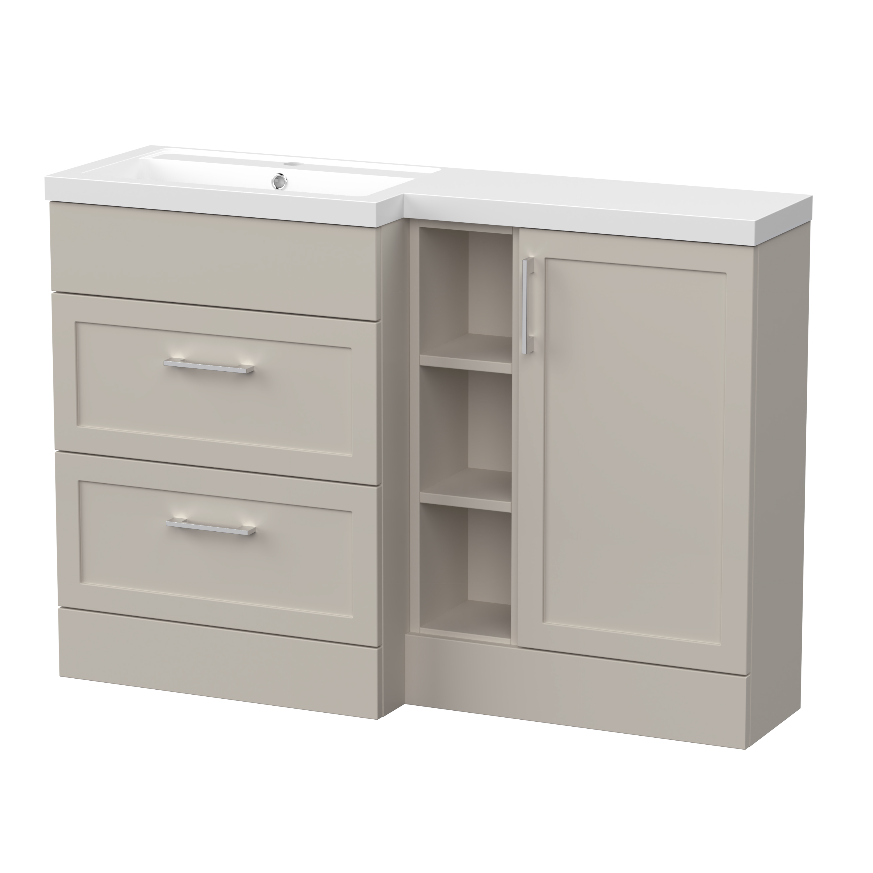 Nuie Lux Fable 1200mm Full Depth Combination Unit & L-Shaped Basin - Left Hand - Pebble Grey