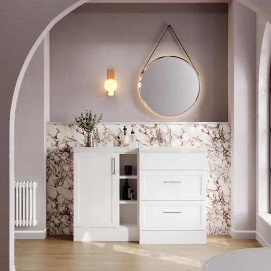 Nuie Lux Fable 1200mm Full Depth Combination Unit & L-Shaped Basin - Right Hand - Matt White