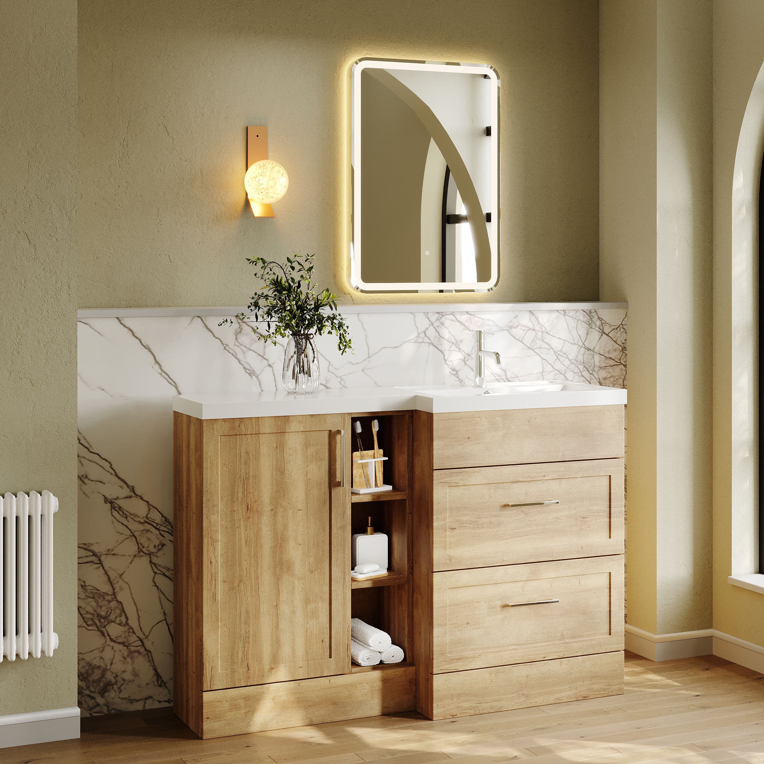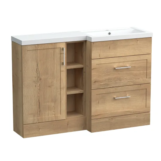 Nuie Lux Fable 1200mm Full Depth Combination Unit & L-Shaped Basin - Right Hand - Autumn Oak