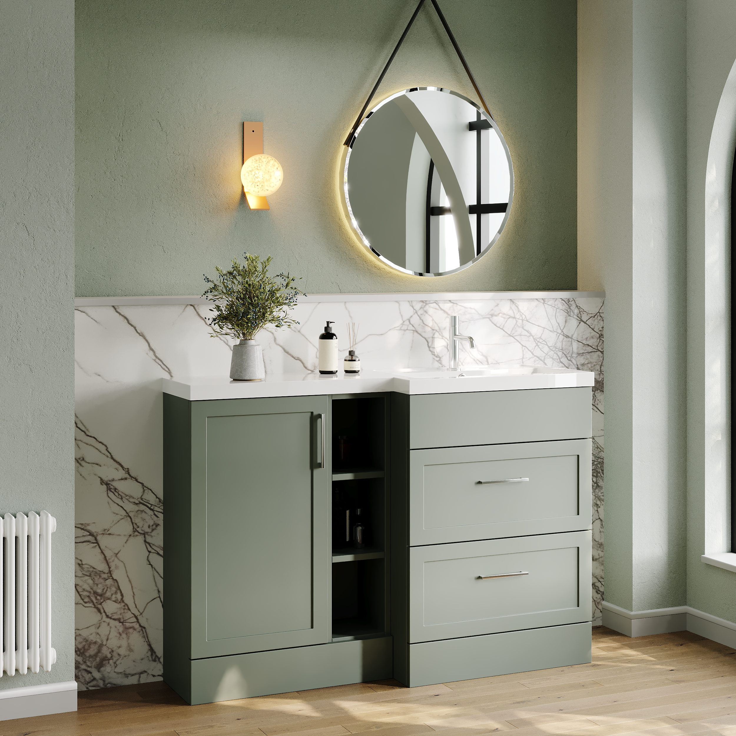 Nuie Lux Fable 1200mm Fern Green Right Hand Combination Unit & L-Shaped Basin