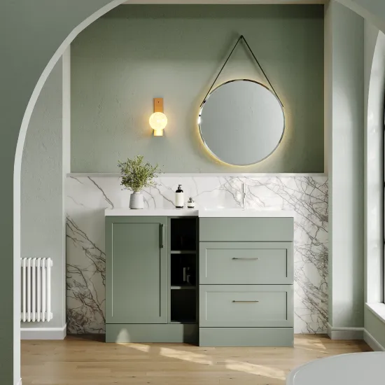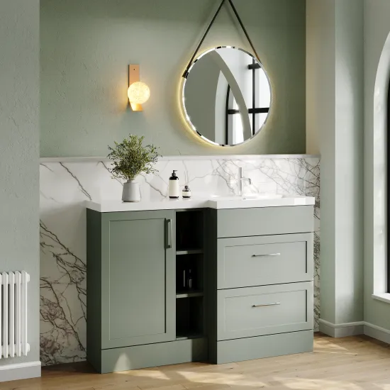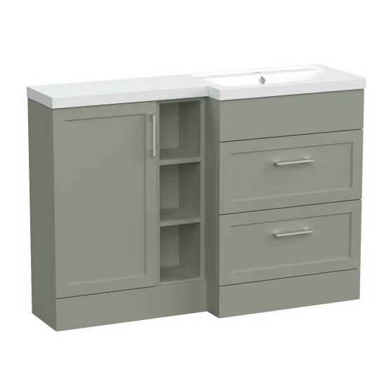 Nuie Lux Fable 1200mm Full Depth Combination Unit & L-Shaped Basin - Right Hand - Fern Green